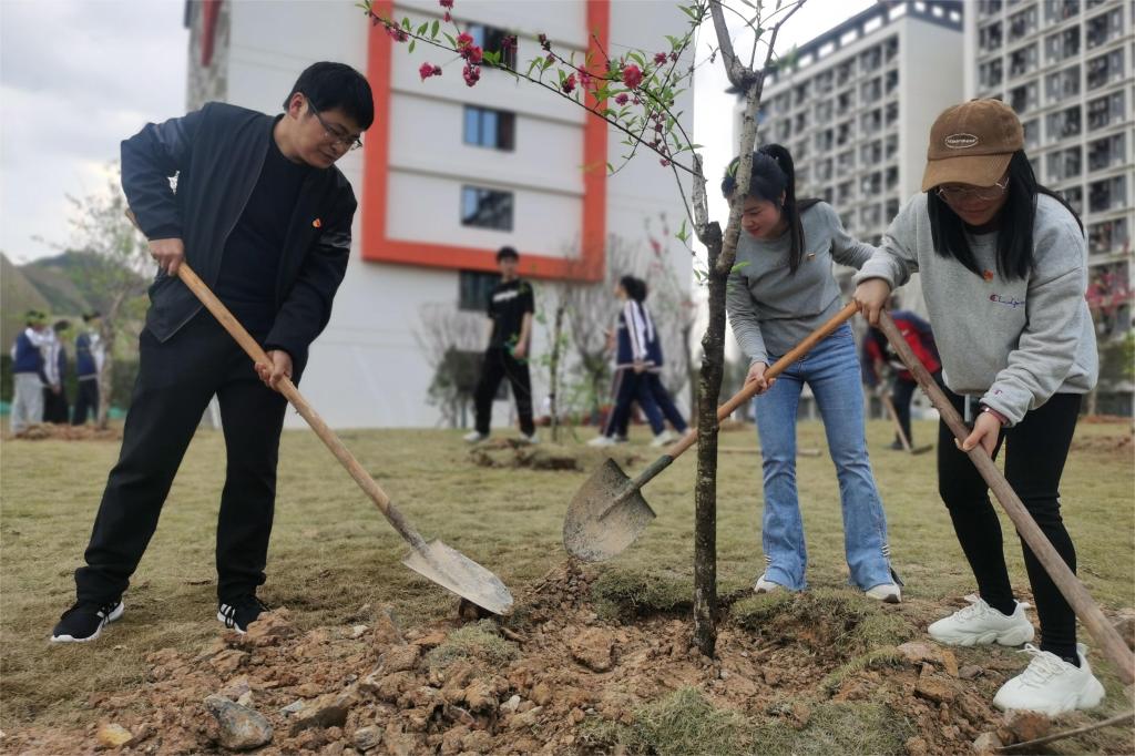 在为进一步推进五育并举,形成以劳育人、以劳树德的良好氛围,营造绿色校园环境,3月12日下午,数学教研部教工党支部与学校各单位紧密合作,在学校博雅桥旁共同开展了一场植树节活动。这次活动旨在增强师生环保意识,落实生态文明建设,以实际行动践行绿色发展理念。