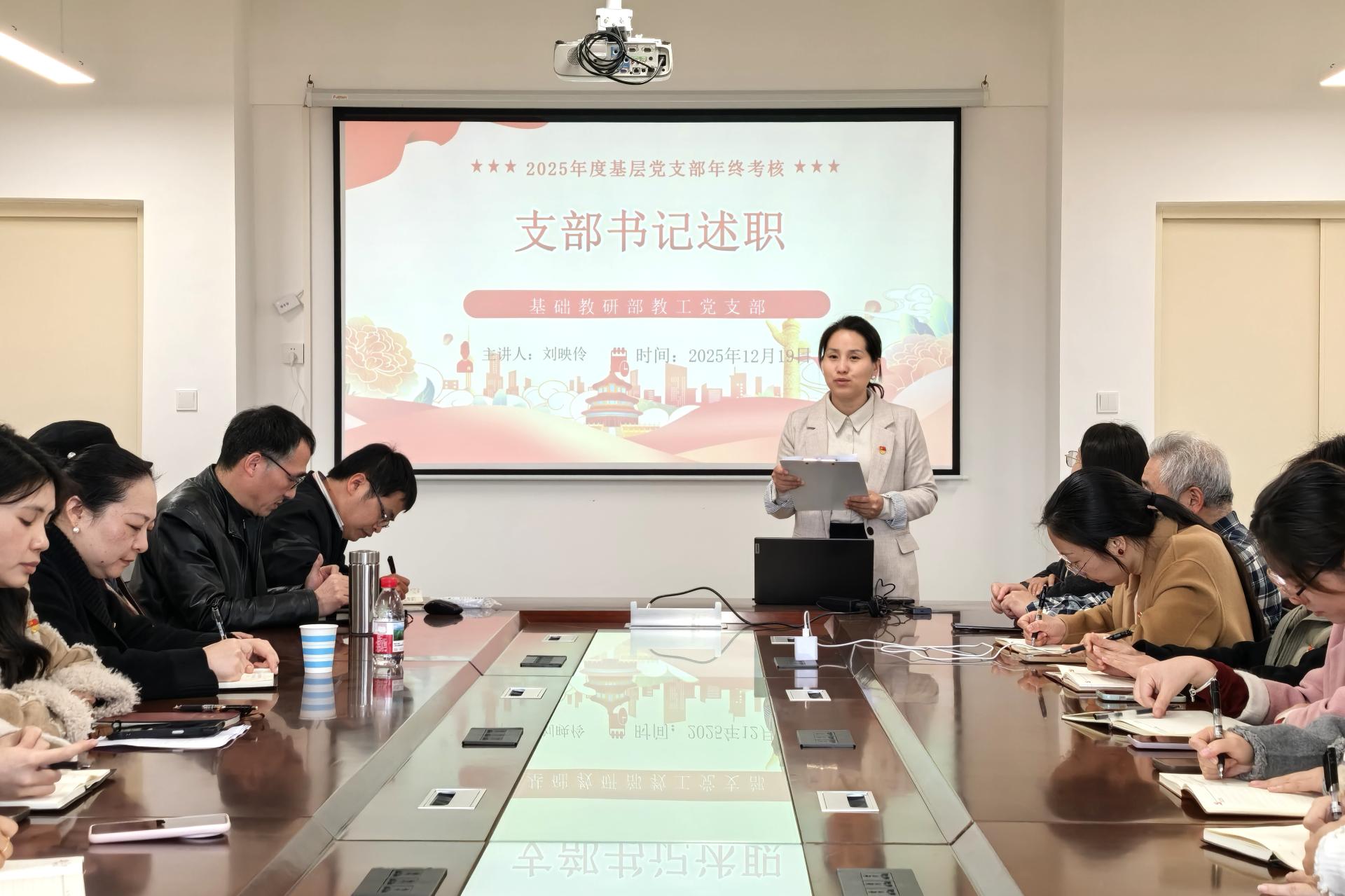 12月19日,基础教研部教工党支部在汇通楼H504会议室召开2025年度党支部书记工作述职会党总支委派总支委员剌啸媛同志到会指导监督,支部全体党员参加会议。