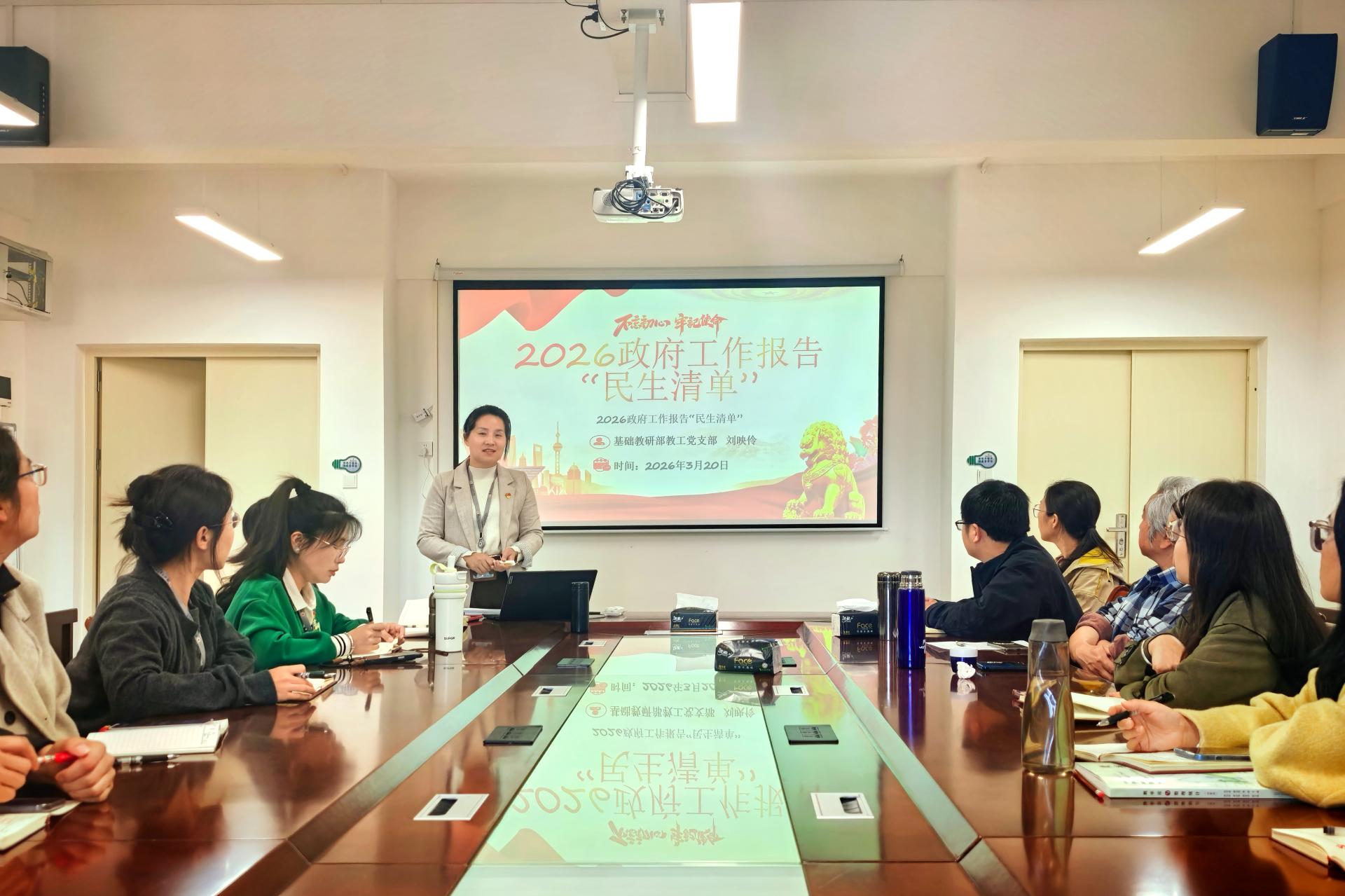 3月20日,基础教研部教工党支部在汇通楼H504会议室组织开展全国两会精神专题学习。本次学习由党支部书记刘映伶主持,支部全体党员教师参与。
