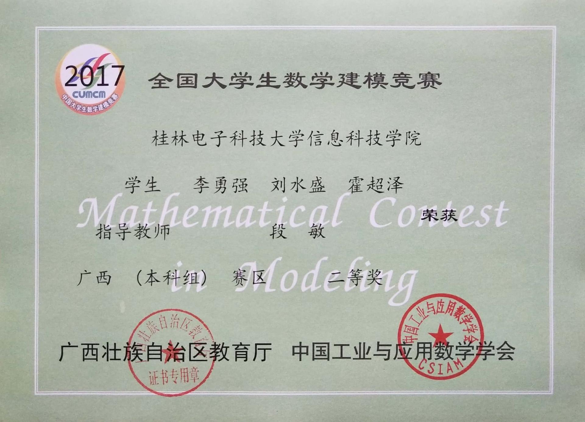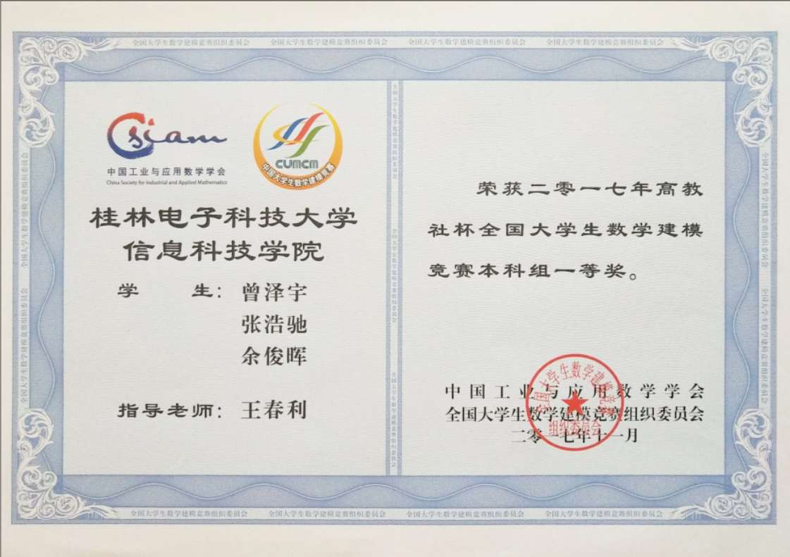 上一条:2018年全国大学生数学建模竞赛获奖