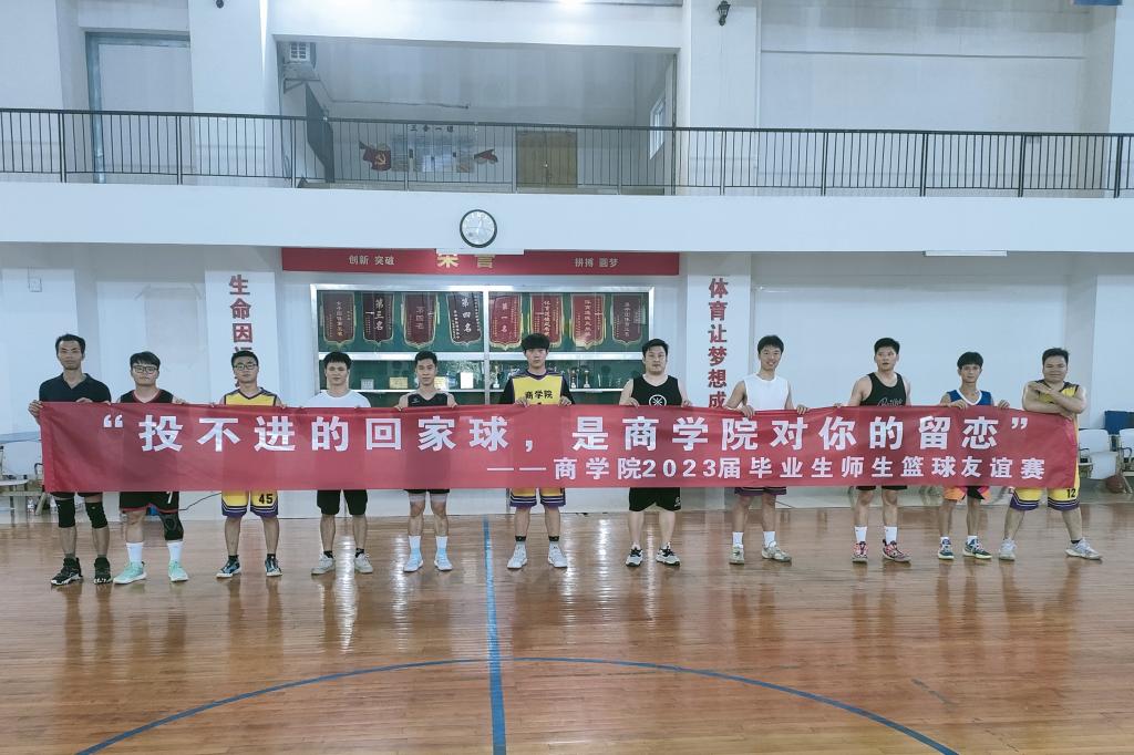 为增进师生友谊,营造文明温馨的毕业生离校氛围,6月1日,商学院在学校文体中心举办“投不进的回家球,是商学院对你的留恋”毕业季师生篮球赛,学院教师和毕业生代表参加本次活动。