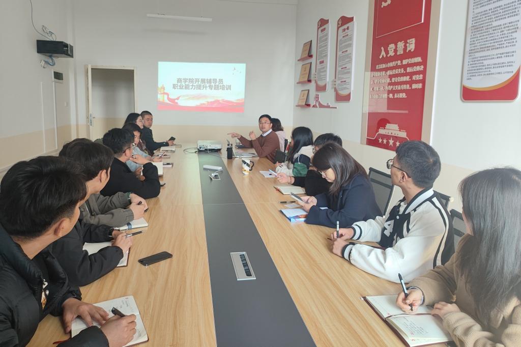 为切实加强辅导员队伍专业化、职业化建设,着力提升辅导员业务能力和工作水平,11月16日,商学院在F504开展辅导员职业能力提升专题培训,培训由学院党委书记许奇担任主讲,商学院全体辅导员参加。