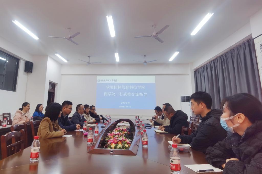 12月1日下午,商学院副院长(主持工作)罗志明带领各教研室主任以及相关教师一行赴桂林航天工业学院管理学院就专业建设发展举措、产业学院建设、教学工作合格评估等方面进行了深入交流,桂林航天工业学院管理学院院长张一纯、副院长黄涛、院长助理杨帆及相关教研室主任等热情地接待了我院一行。