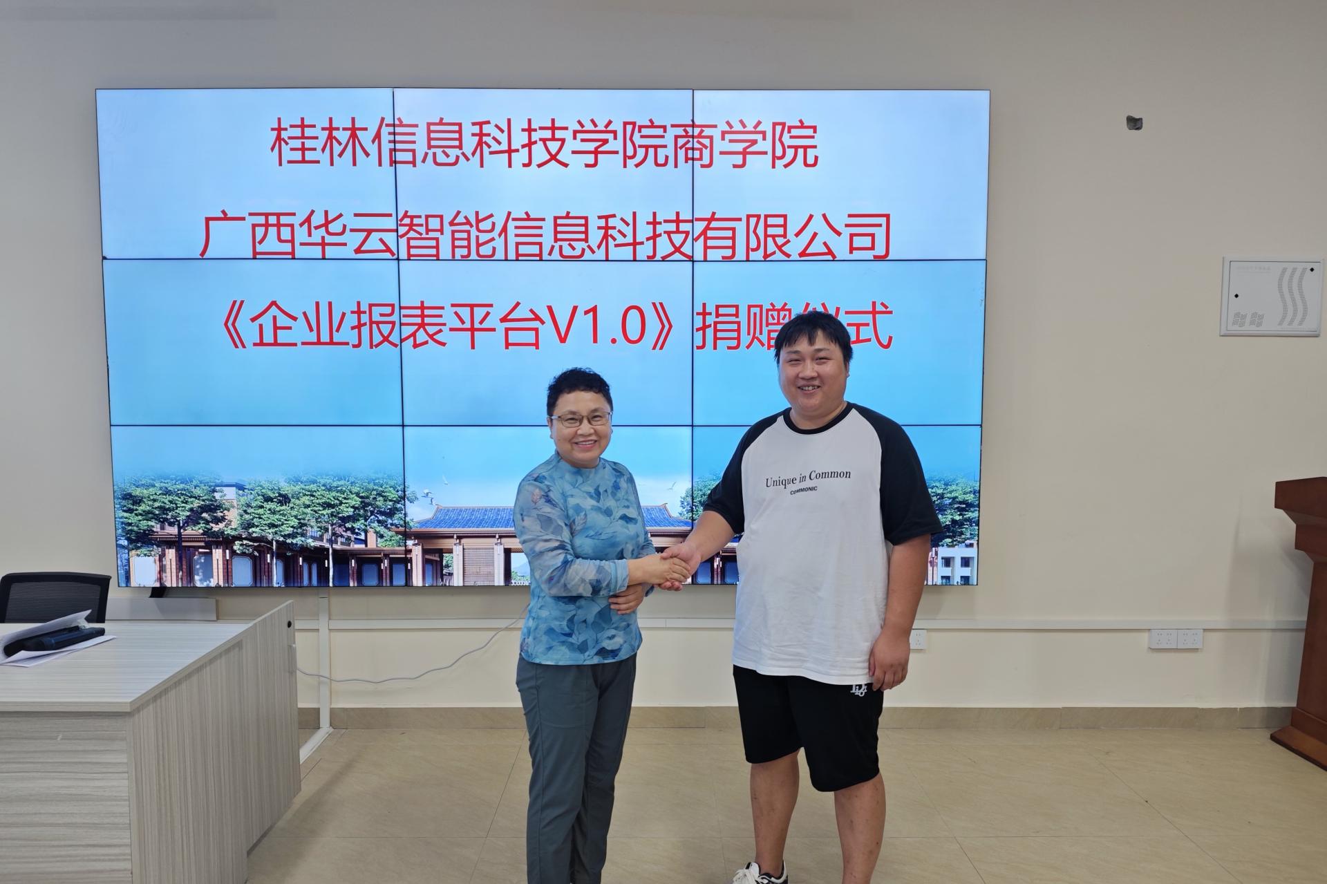 2024年9月13日上午,beat365中文官方网站商学院与广西华云智能信息科技有限公司在财务管理实验室举行了《企业报表平台V1.0》捐赠仪式,并对学院教师进行了专业培训。这次合作旨在通过先进的技术手段提升学院教师教学水平,为学院师生提供更加实用的学习工具。捐赠仪式上,双方共同签署了《企业报表平台V1.0》捐赠协议,标志着双方正式达成战略合作关系。