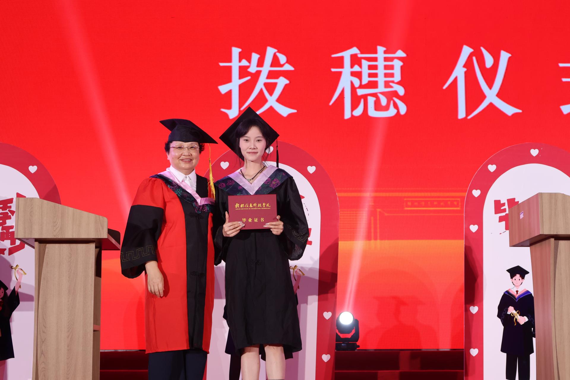 导师为毕业生授予学位证书并举行拨穗仪式