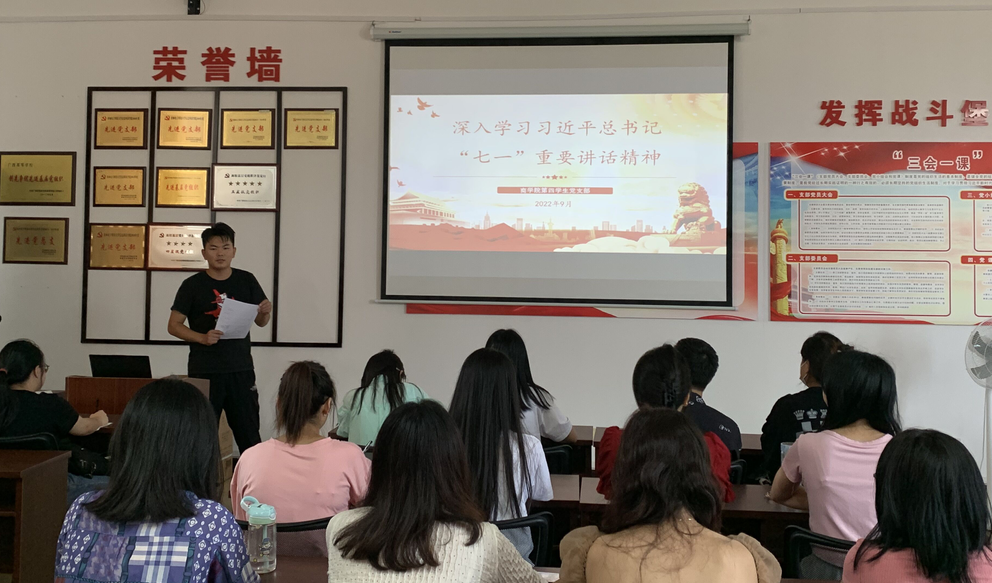 为深入学习贯彻习近平总书记“七一”重要讲话精神,9月21日,商学院第四学生党支部在11501党员活动室开展习近平总书记“七一”重要讲话精神专题学习。本次学习由支部书记徐冉老师领学,全体师生党员参与。