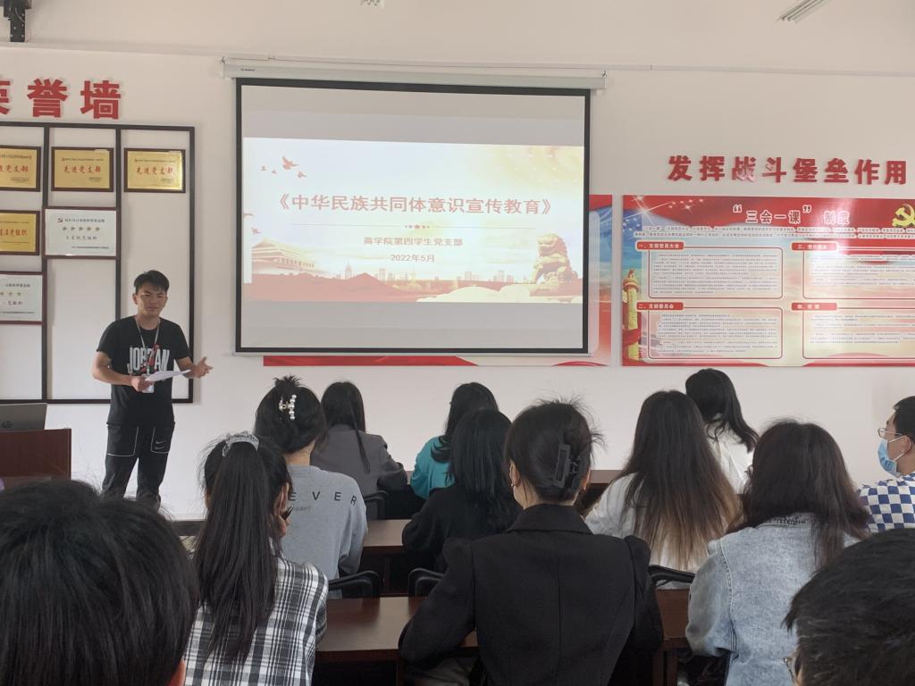 5月17日由商学院党总支主办,第四学生党支部承办的“铸牢中华民族共同体意识,做维护民族团结的优秀党员”专题学习于11501组织开展,本次学习由支部书记徐冉老师主持,全体党员参与学习。
