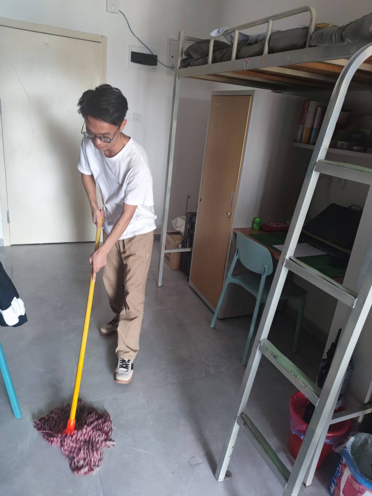 活动中,党员同志自发进行宿舍卫生清扫工作,打造党员标杆宿舍,大家积极参与,热情高涨,并通过自身的行动带动身边的同学加入卫生大扫除的行列,活动中,党员按照事前的分组,自行携带好卫生清洁工具,各小组在小组负责人的带领下,对宿舍进行了认真的清扫,不放过任何一个卫生死角,针对厕所、玻璃门卡槽等重点区域进行了全面清洁。最后,对宿舍清理后的垃圾进行分类清理,有序运送到垃圾桶。每位党员分工明确、密切配合,将宿舍地面、桌面进行清洁。从阳台到洗手台,从书柜到书桌,再到衣柜以及门窗,每一个地方都打扫得细致入微。同时还不忘打扫完开窗开门进行通风,打造一个干净整洁的宿舍环境。