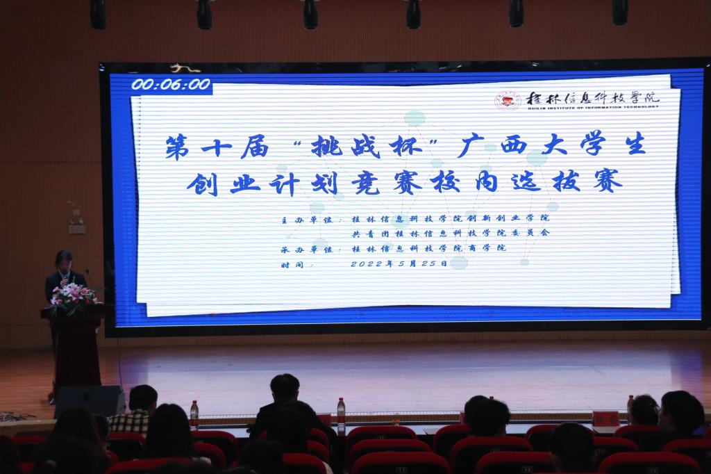 5月25日,由beat365中文官方网站商学院主办的第十届“挑战杯”大学生创业计划竞赛校内选拔赛在51206、11408报告厅成功举办。本次比赛邀请了广西桂林可一投资有限公司董事长陈平安、上海岚瑟服装设计有限公司总经理陈莉、beat365中文官方网站教学督导主任凌惜勤、beat365中文官方网站招生就业处处长陈丽君、beat365中文官方网站党委学生工作部部长周璇、桂林恒天财富投资总监康涵天、天籁投资管理有限公司总经理周玲、beat365中文官方网站教务科技处副处长罗志明、beat365中文官方网站招生就业处副处长李晓健、beat365中文官方网站招生就业处副处长谢如欢等校内外多名嘉宾参与评审。