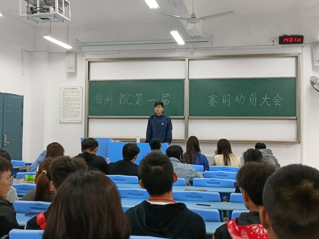 为了迎接即将到来的校运会,我院于10月19日在11104教室举行了校运会运动员动员大会,商学院分团委书记、21级辅导员周阳霖老师、21级辅导员李静怡老师、20级辅导员张缘老师,及全体院运动员们出席了本次动员大会。