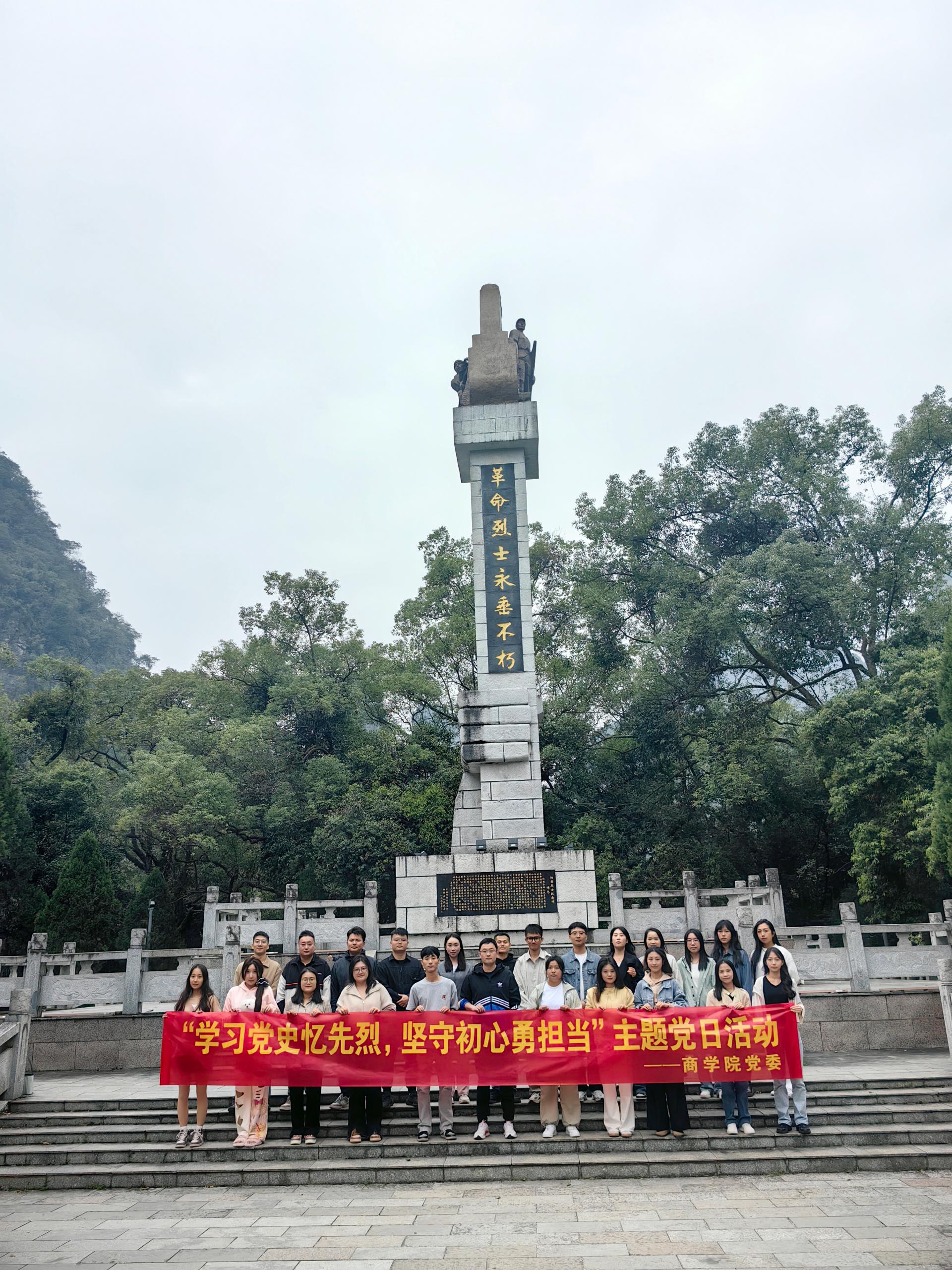 为持续推进党史学习教育,不断增强学生工作队伍的凝聚力和战斗力,充分发挥党员教师的先锋模范作用,11月3日,商学院党委书记许奇带领学工办全体辅导员前往阳朔临阳联队烈士纪念碑,开展辅导员职业成长之“薪火计划”(第七期)暨“学习党史忆先烈,坚守初心勇担当”主题党日活动。