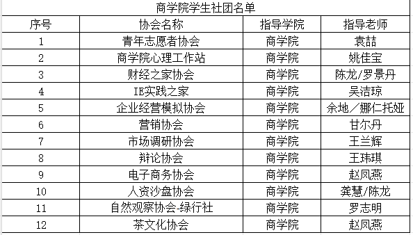 商学院学生社团名单