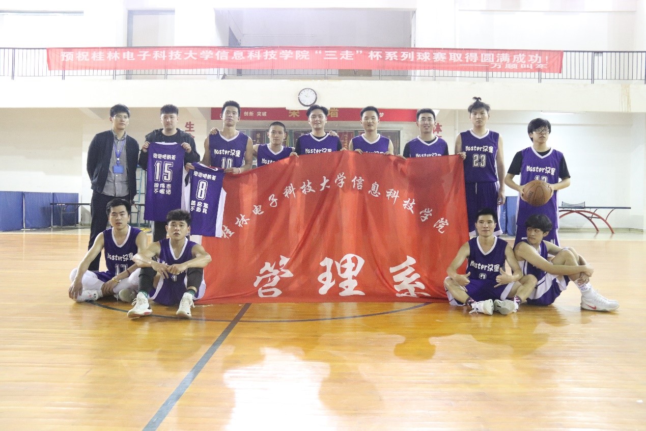 4月29日,桂林电子科技大学信息科技学院2019年度“三走杯”男篮决赛在文体中心举行,我系16级男篮在决赛中再度对阵17信息男篮,两系辅导员及学生代表到场加油助威。赛场上,双方运动员们都全力以赴,猛烈进攻、用心防守,在场的同学们也情绪高涨、击鼓助威。最终管理17男篮战胜17信息男篮拿下全场总冠军,成功卫冕。