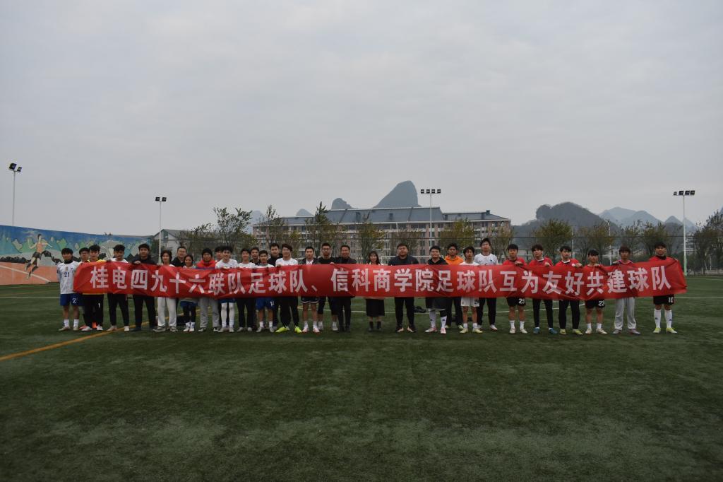 为响应国家教育部和体育总局倡导足球进校园以及全民健身的号召,进一步加强与兄弟院校的体育文化交流。3月6日下午,商学院足球队在指导老师的带领下前往桂林电子科技大学,同桂林电子科技大学四九十六联队足球队展开了一场友谊赛。联队中艺术与设计学院团委书记和人工智能学院指导老师均来到了现场为队员们加油。