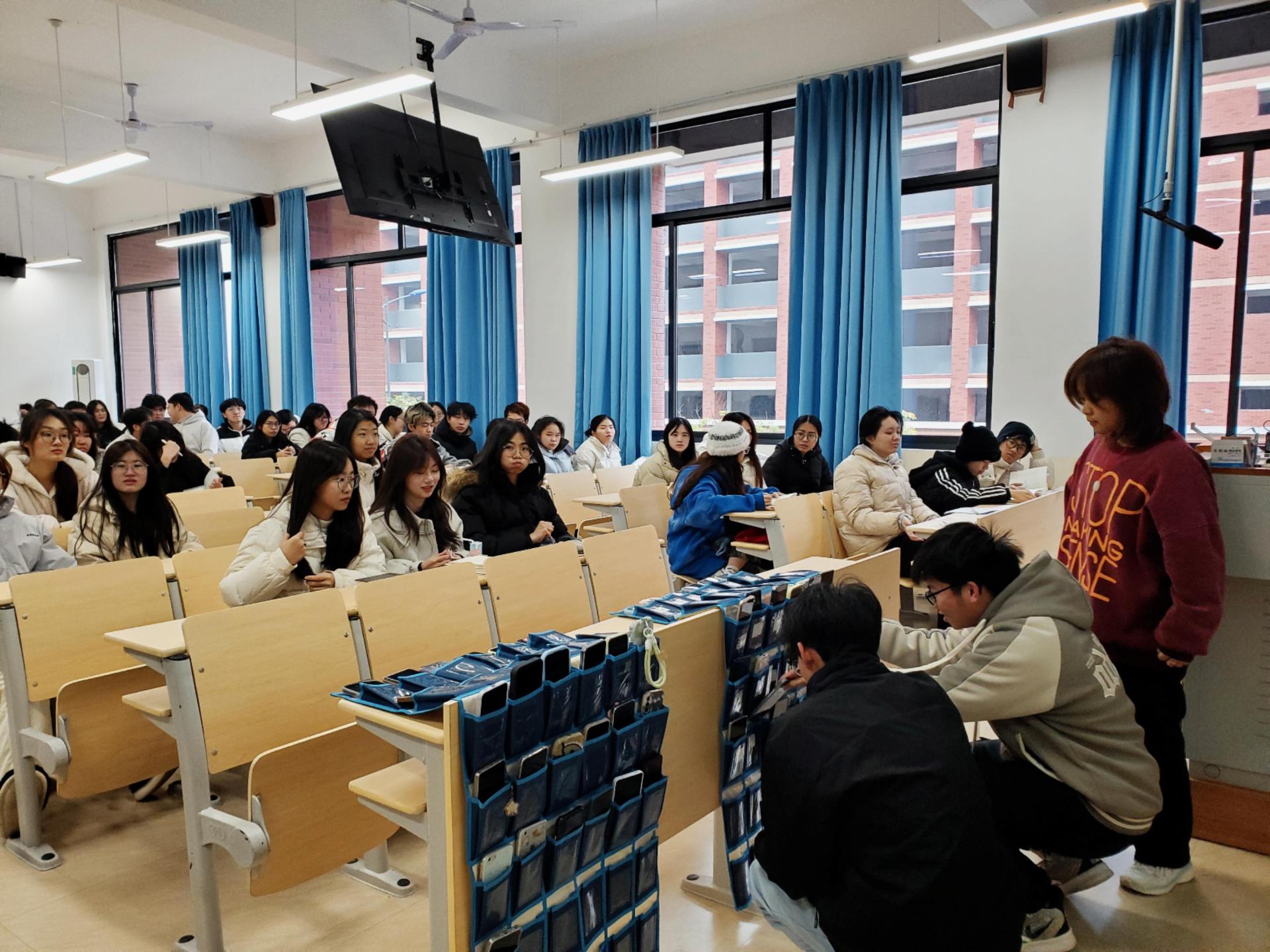 作为学校“无手机课堂”创建的试点学院,为确保活动顺利开展,商学院在活动前期进行了周密的部署和宣传,深入学生群体宣贯“无手机课堂”实施的必要性和重要性,要求学生党员、学生干部要充分发挥模范带头作用,主动引导同学们将手机放入指定收纳袋中,共同维护良好的课堂秩序。通过学院教职工会议,引导任课教师加强课堂教学过程监管,除课堂教学需要外,学生在课堂上一律不得使用手机。同时,学院不定期组织人员进行课堂抽查,记录并反馈无手机课堂执行情况。