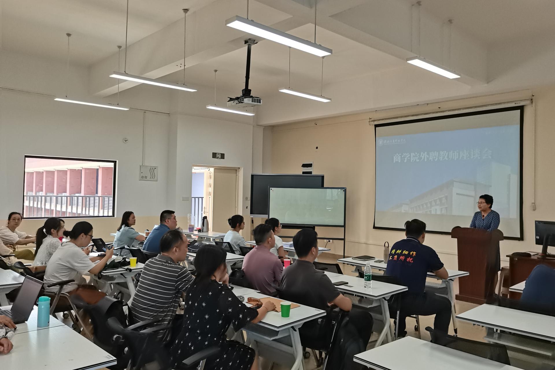 为加强外聘教师管理,提高外聘教师教学质量,推动教育教学工作发展,8月28日,商学院召开新学期外聘教师教学工作线下会议。会议由沈洋副院长主持,周洁院长、各教研室主任以及32名外聘教师参加了会议。