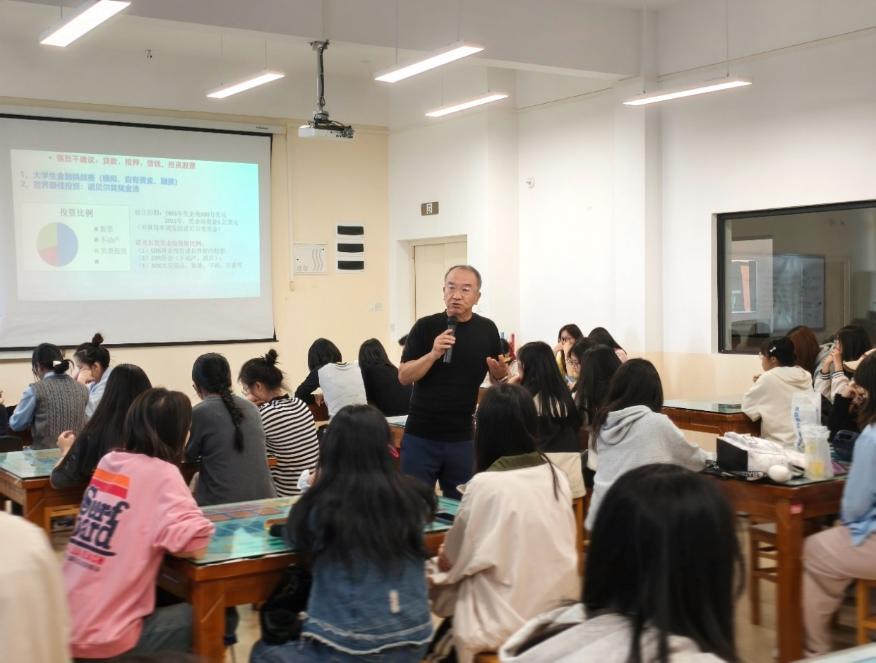 讲座中,孙教授深入浅出地阐述了股市哲学的核心内涵以及投资艺术的精妙之处,系统地讲解了股票市场的基本知识,如股票的定义、发行方式、交易规则等,为同学们指明了何为股市哲学与投资艺术。在和同学们的交流中,孙教授指出,股市不仅仅是数字的波动,更是一种哲学的体现,投资者需要具备理性的思维、长远眼光才能在复杂多变的股市中保持冷静,做出明智的决策。同时,孙教授也纠正了大多数同学认为股市就单单只是炒股的错误想法,指明了投资是一门深邃的艺术,需要投资者不断地学习、务实和创新,才能窥见其中的技巧和规律。在现场的同学们都听的非常投入,孙教授还耐心地为同学们解答疑难困惑,分享了许多现实事例供同学们学习与警示。