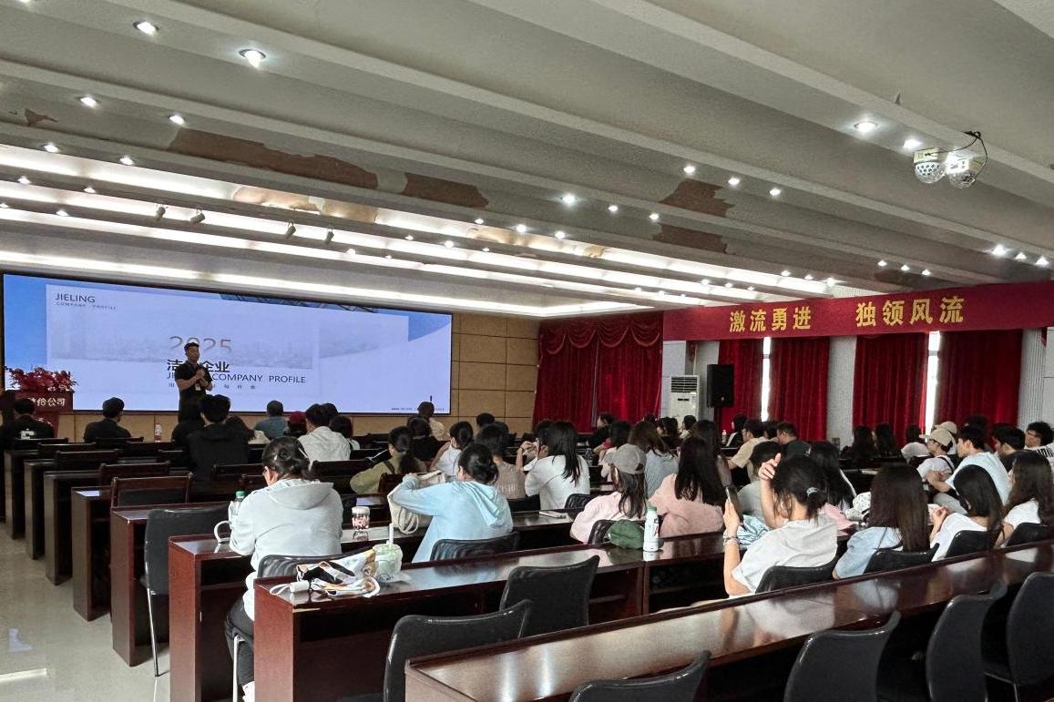 桂林洁伶工业有限公司负责人给师生讲解公司业务