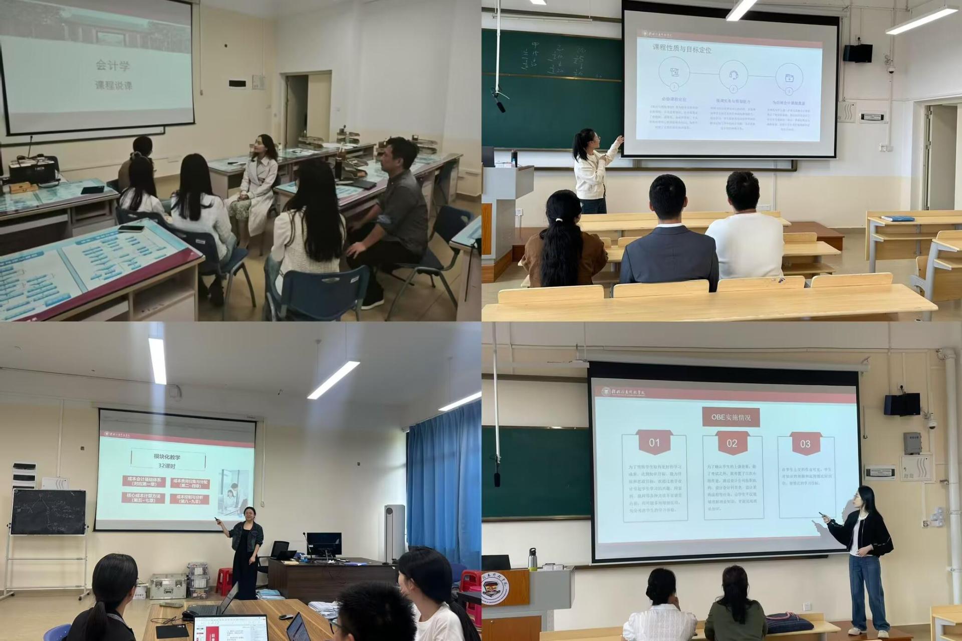 本次演练围绕“课程定位、OBE改革、课程思政、教学方法”四大核心展开,涵盖财务管理专业所有核心课程。各小组教师结合自身实际教学课程,通过PPT演示详细阐述课程对人才培养目标的支撑度、教学改革实施路径及课程思政融入策略。例如,第一组以《财务会计(下)》为例,展示如何通过案例教学与模拟实训强化学生实操能力;第二组以《会计学原理》为例,探讨基础理论与实际应用的结合路径;第三组以《财务制度设计》为例,提出“企业内部控制优化”等实务项目,引导学生关注制度设计与实际管理需求的衔接。