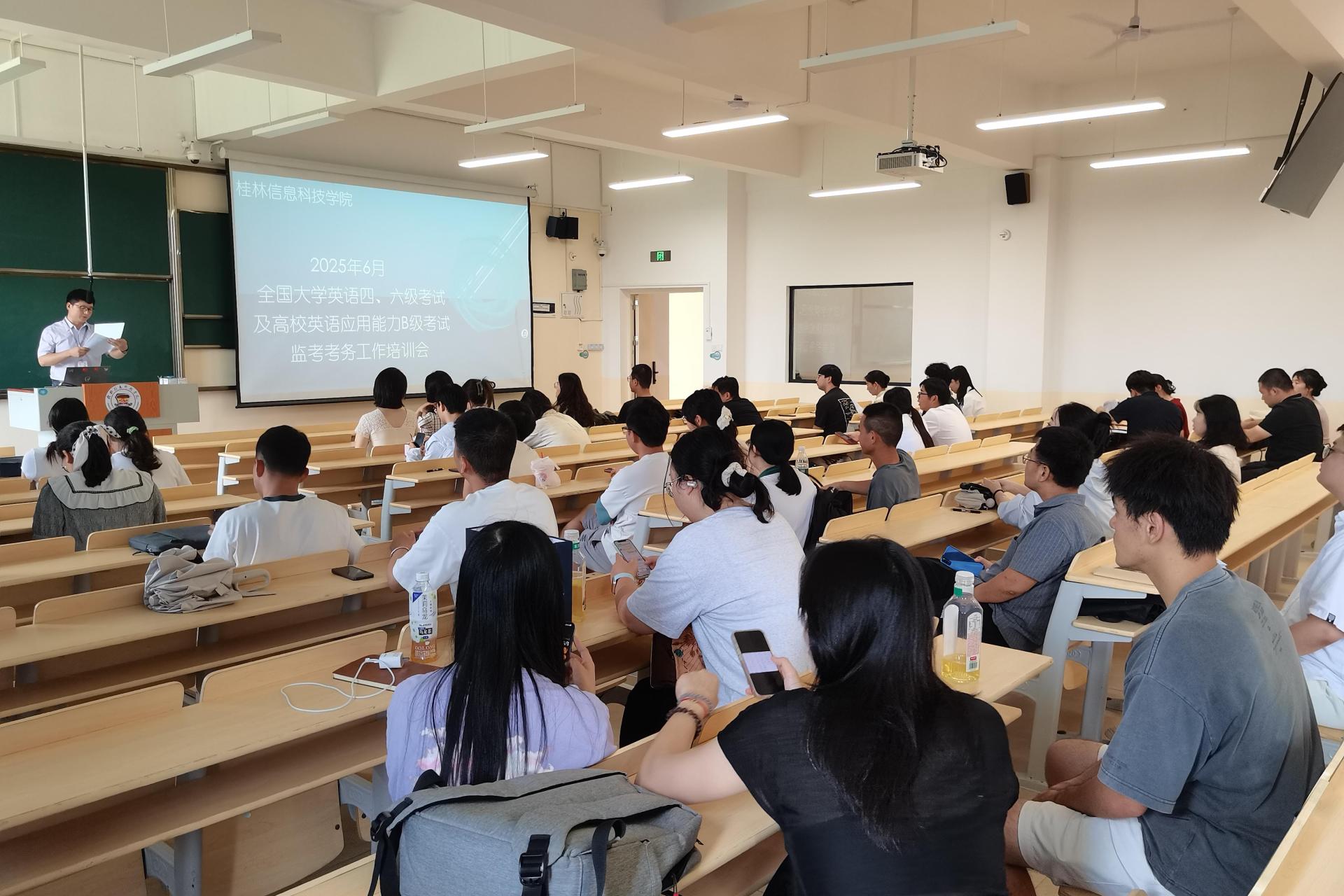 为保障2025年6月14日全国大学英语四级考试规范、有序进行,beat365中文官方网站商学院于6月13日下午组织全体监考教师开展专题培训。培训紧扣国家考试纪律要求与学校具体实施细则,为即将到来的四级考试监考任务奠定坚实基础。