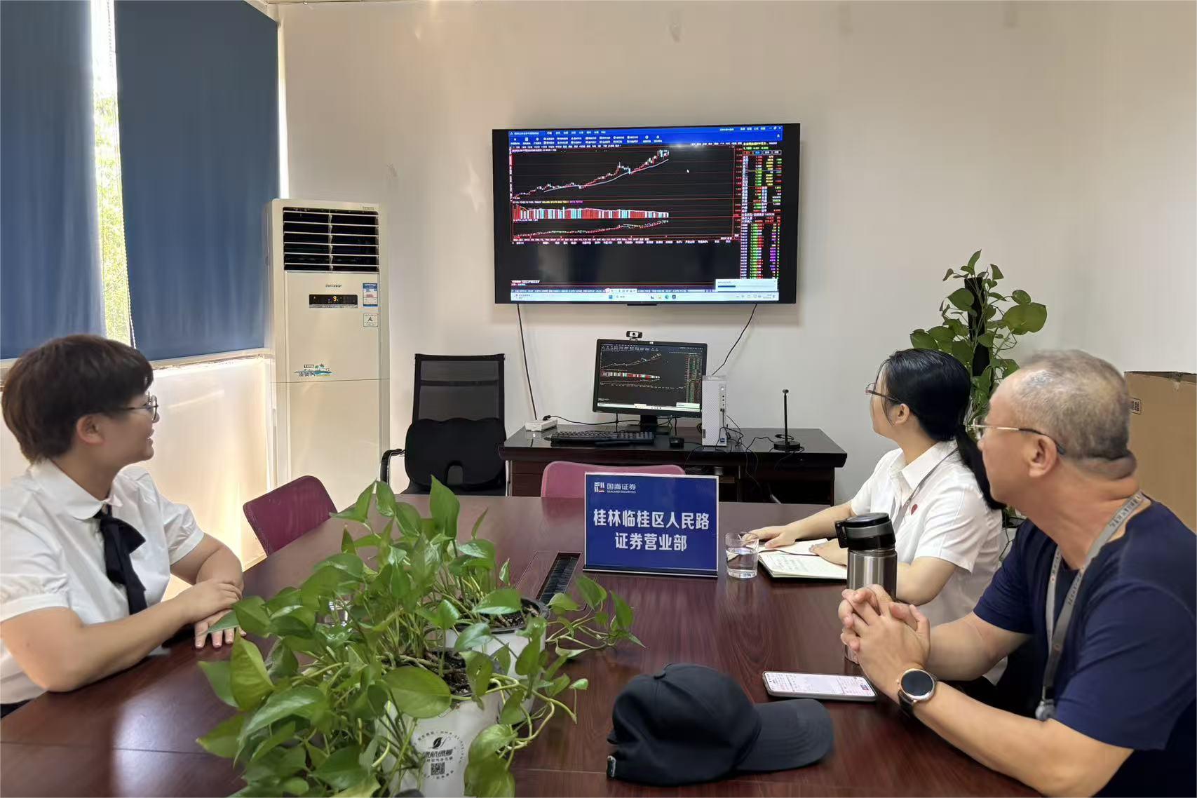 9月2日,为促进产学研深度融合、提升《证券投资实务》课程教学质量,财务管理教研室孙东升教授、金融科技教研室蒋小艳老师与谭彦彤老师三位授课教师共同前往国海证券桂林市临桂区人民路营业部进行沟通交流与教学研讨。