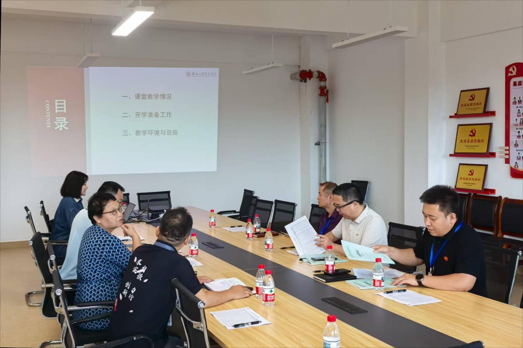 在汇通楼H612会议室,商学院院长周洁、党委书记许奇、副院长罗志明、院长助理潘捷依次向校领导作学期初工作汇报,重点介绍教师报到、实验室与教室设备检查、教材到位及迎新工作等情况,并解答了校领导提出的相关问题。甘勇书记对我院教学工作予以肯定,强调学期初教学秩序关乎全学期教学质量,全体教师需高度重视,要将迎评工作与日常管理结合。
