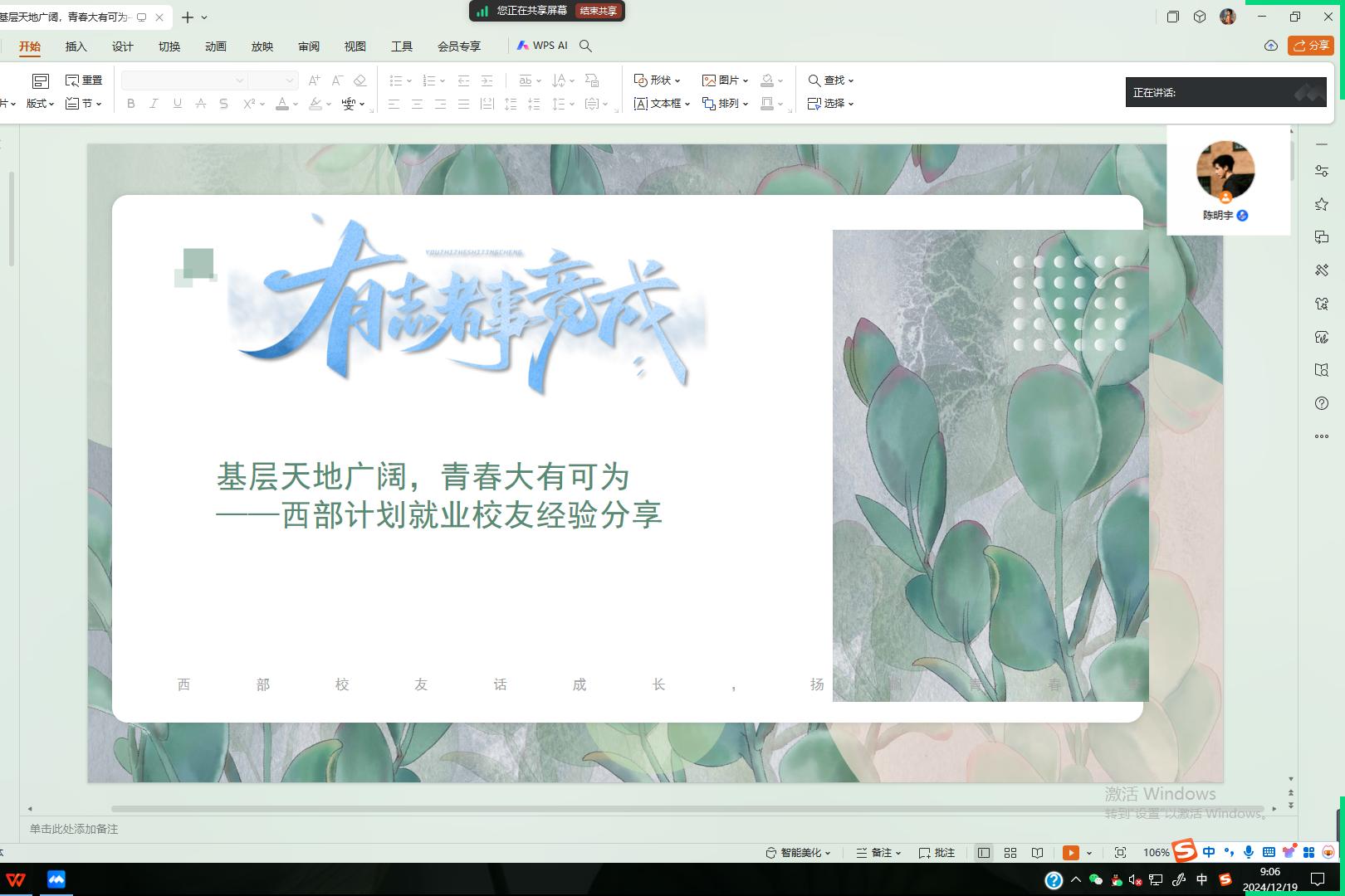 分享会上,陈明宇学长深情讲述了他在基层工作的经历和感悟,从熟悉党政机关工作流程到追求卓越,他以实际行动诠释了“用一年不长的时间去做一件终生难忘的事”。他的故事点燃了同学们到西部建功立业、到基层锤炼本领的热情。