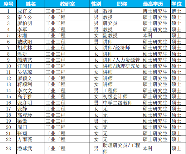 工业工程专任教师