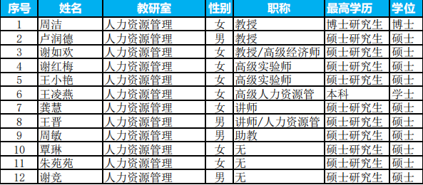 人力资源管理专任教师