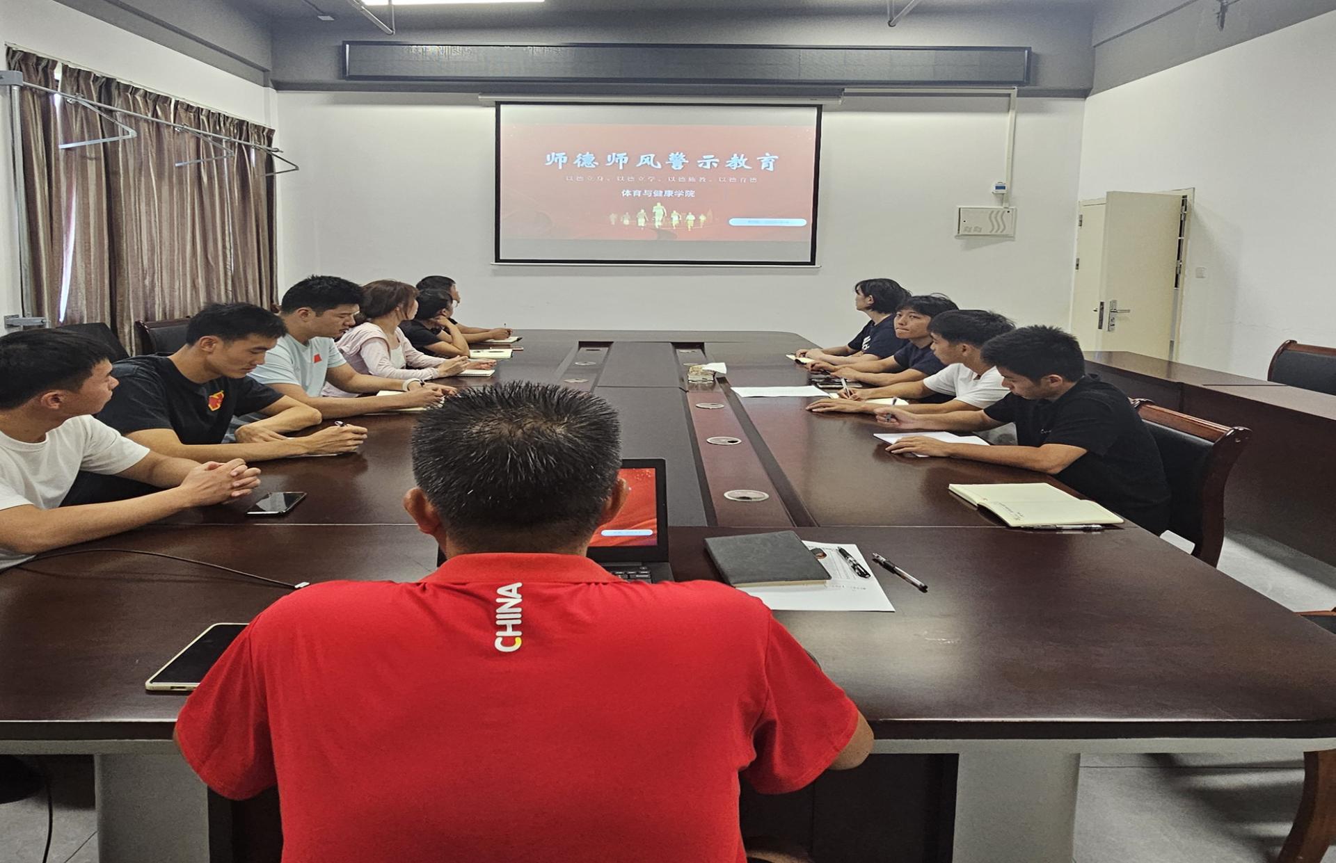 为进一步贯彻落实党的二十届三中全会精神,加强师德师风建设,9月4日中午,体育与健康学院党总支在行健楼会议室开展师德师风警示教育,会议由党总支书记关永康主持,学院全体新入职党员教师参加此次会议。