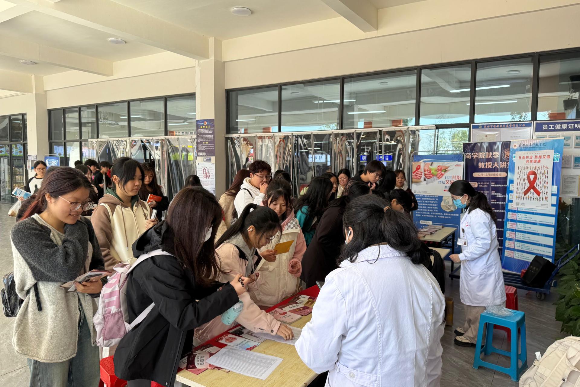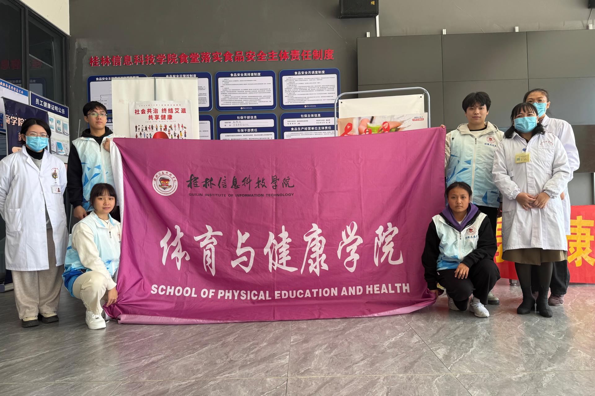 2024年12月1日是第37个“世界艾滋病日”,为进一步加强高校大学生预防艾滋病教育工作,促进新时代青年身心健康,11月29日,体育与健康学院携手桂林市中医医院组织开展以“社会共治 终结艾滋 共享健康”为主题的防艾宣传活动。