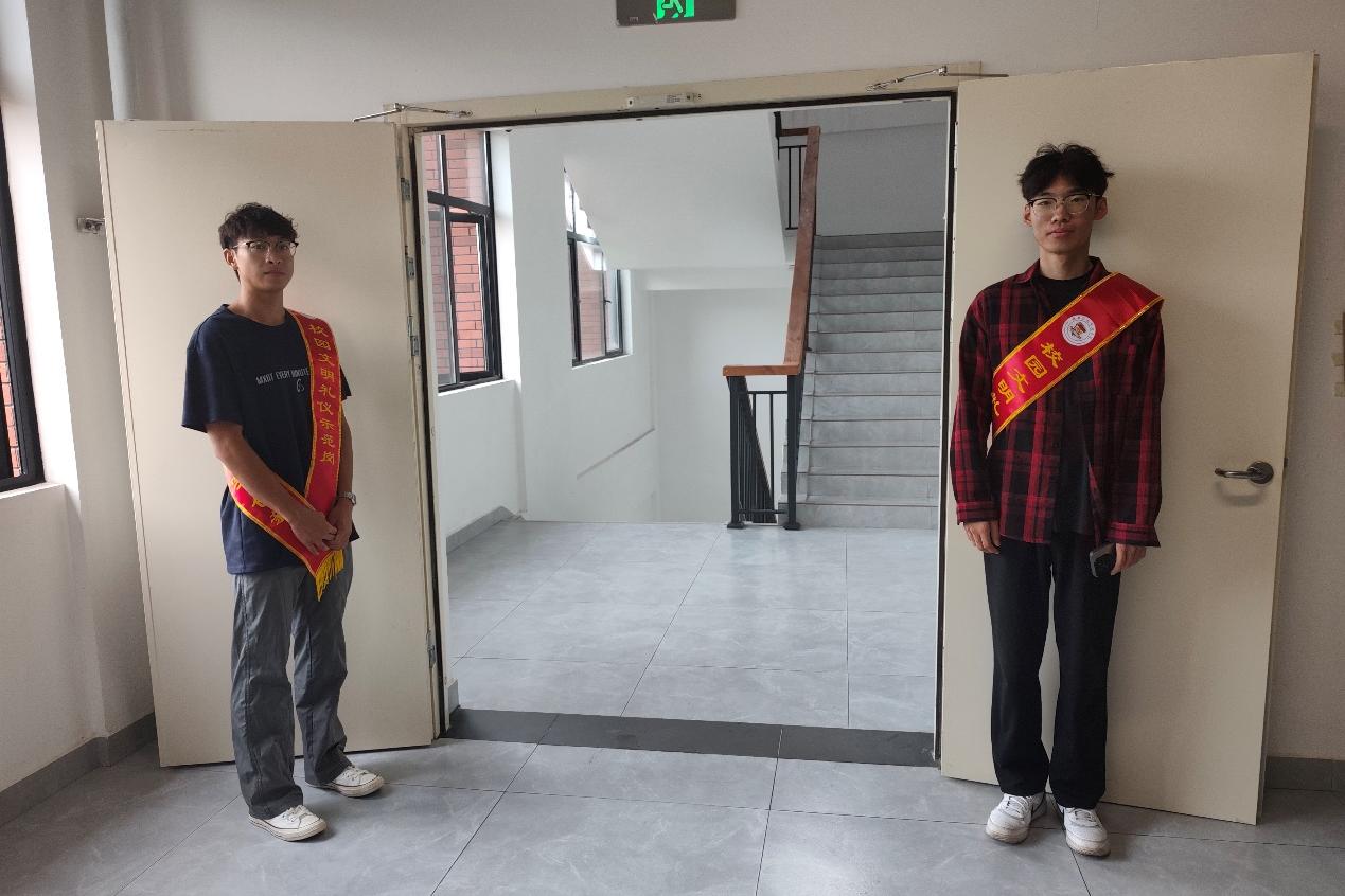 校园里,由各班级积极报名担任礼仪小标兵的同学,岗亭设定在楼道口、大门口,还有不停巡逻的流动人员。他们按时到岗,积极提醒同学们注意穿拖鞋、带食物进课堂的情况,主动向老师问好。