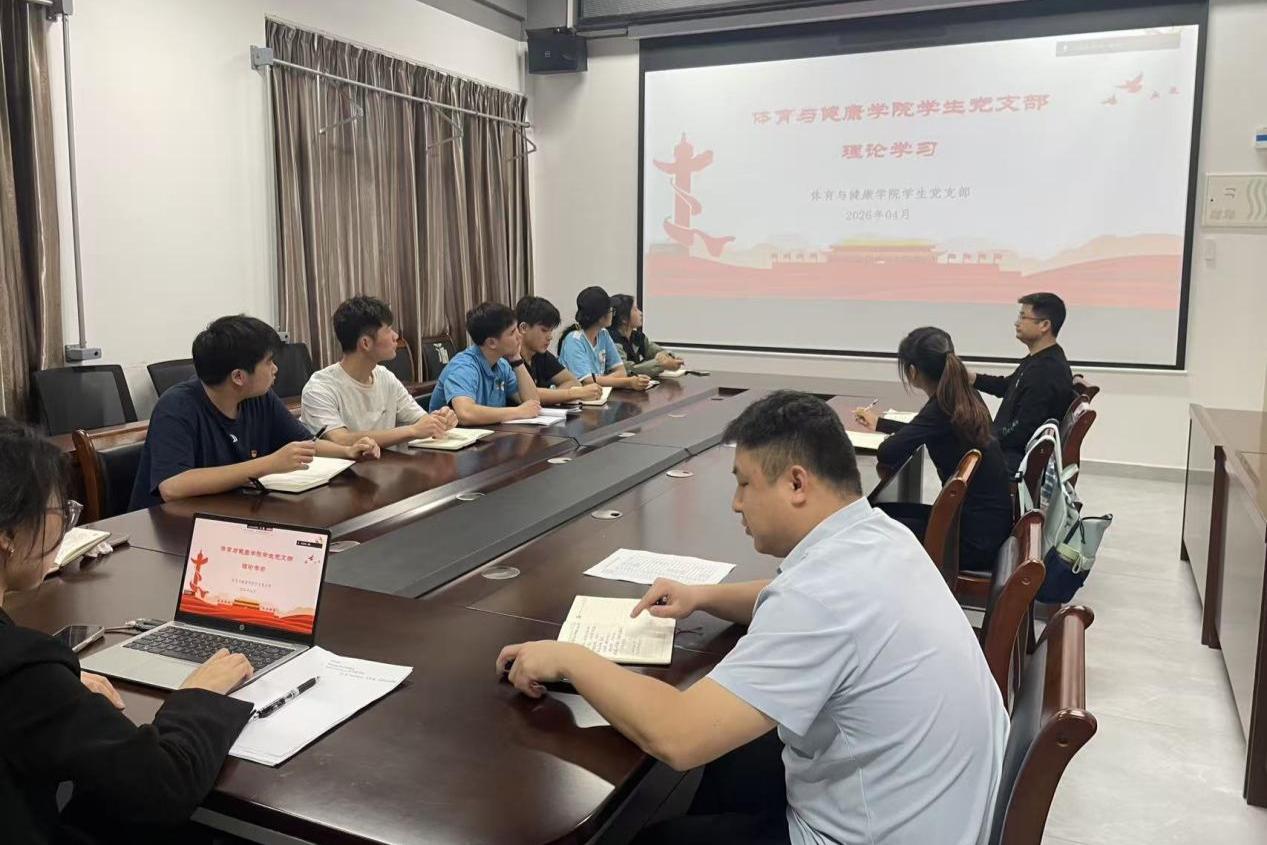 4月14日,体育与健康学院学生党支部在行健楼205会议室组织全体党员深入学习习近平总书记关于树立和践行正确政绩观的重要论述。