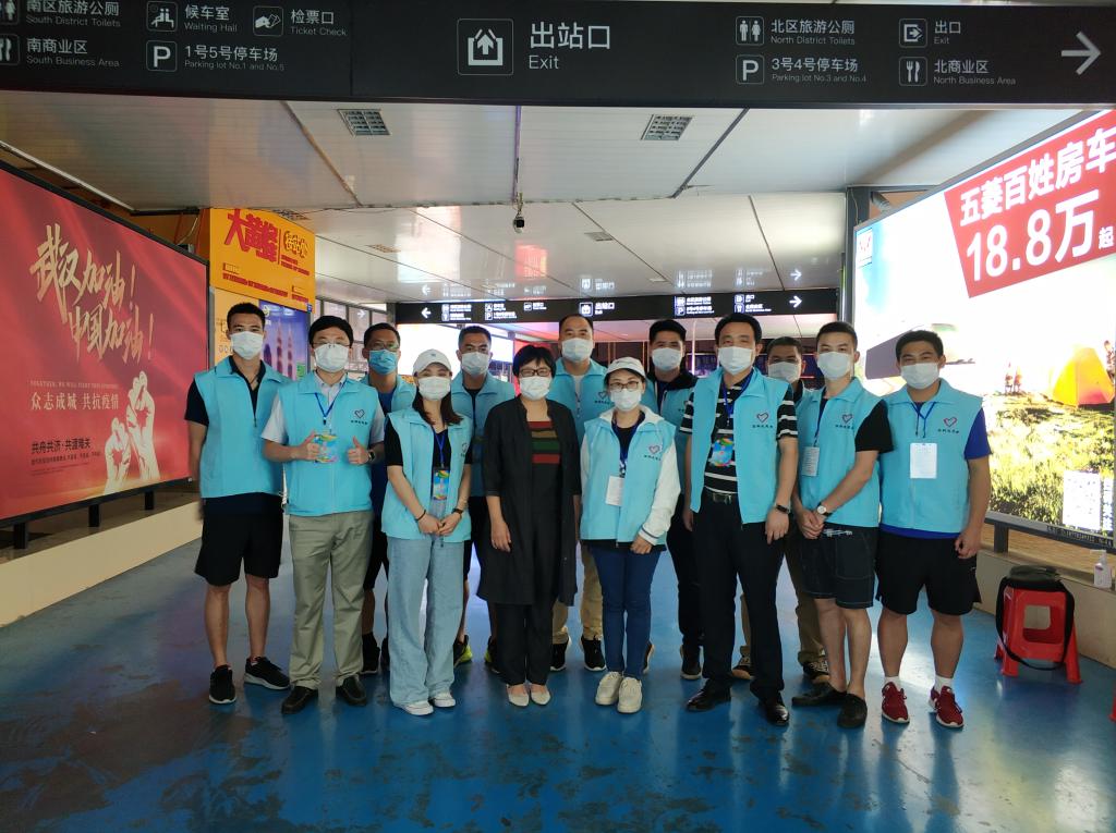 5月11日,体育教研部教师在风雨中坚守完成了学校第二批1400余学生的返校接站(北站)任务,学校领导段复建校长一行到站慰问一线接站工作人员。