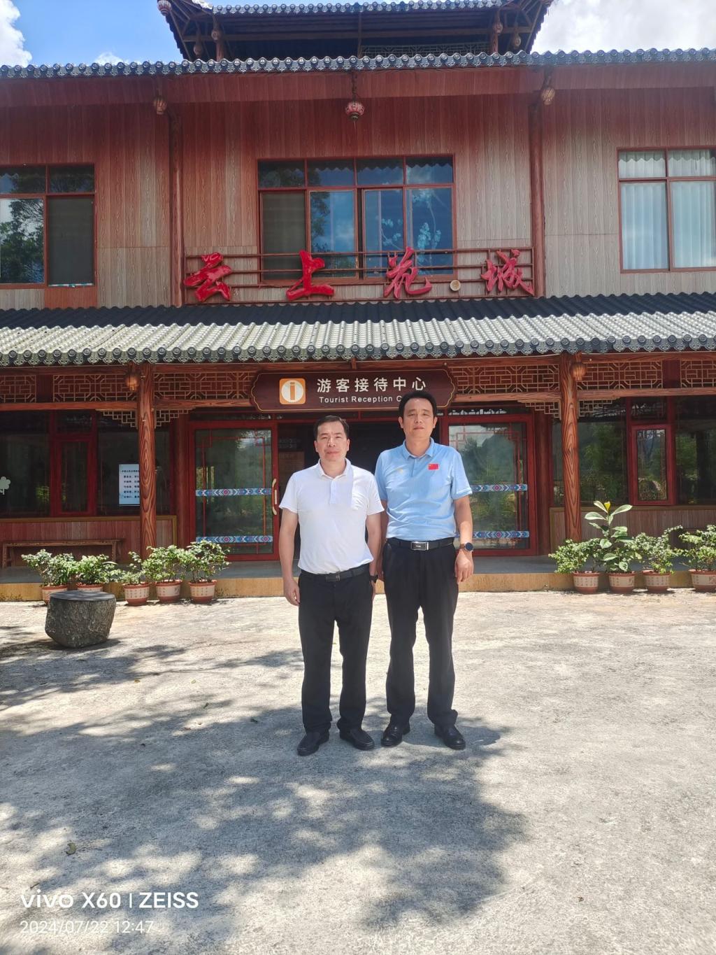 调研云上花城与乐业县常务副县长张彩昊(左一)合影留念