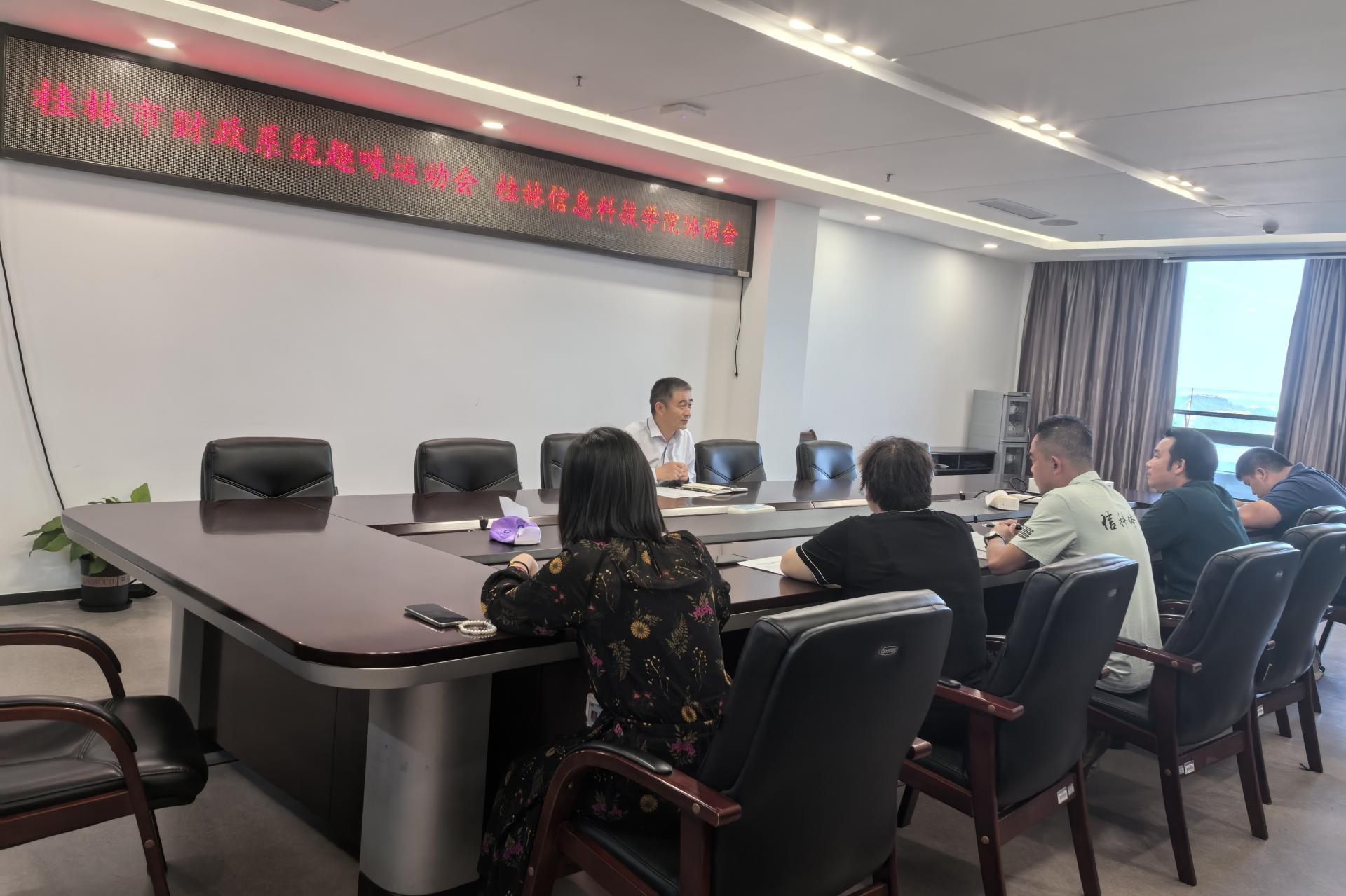 前期,桂林市财政局领导到beat365官网协调赛事筹备工作,针对赛事筹备、赛事执行、宣传和安全保障工作等进行沟通交流。学校党委副书记李飞出席调研会,对本次赛事在beat365官网举办表示大力支持,并做出了明确分工,保障此次赛事顺利进行。体育与健康学院、后勤服务处、保卫处和宣传部各司其职,确保为本届体育赛事提供技术支撑和各项保障服务。