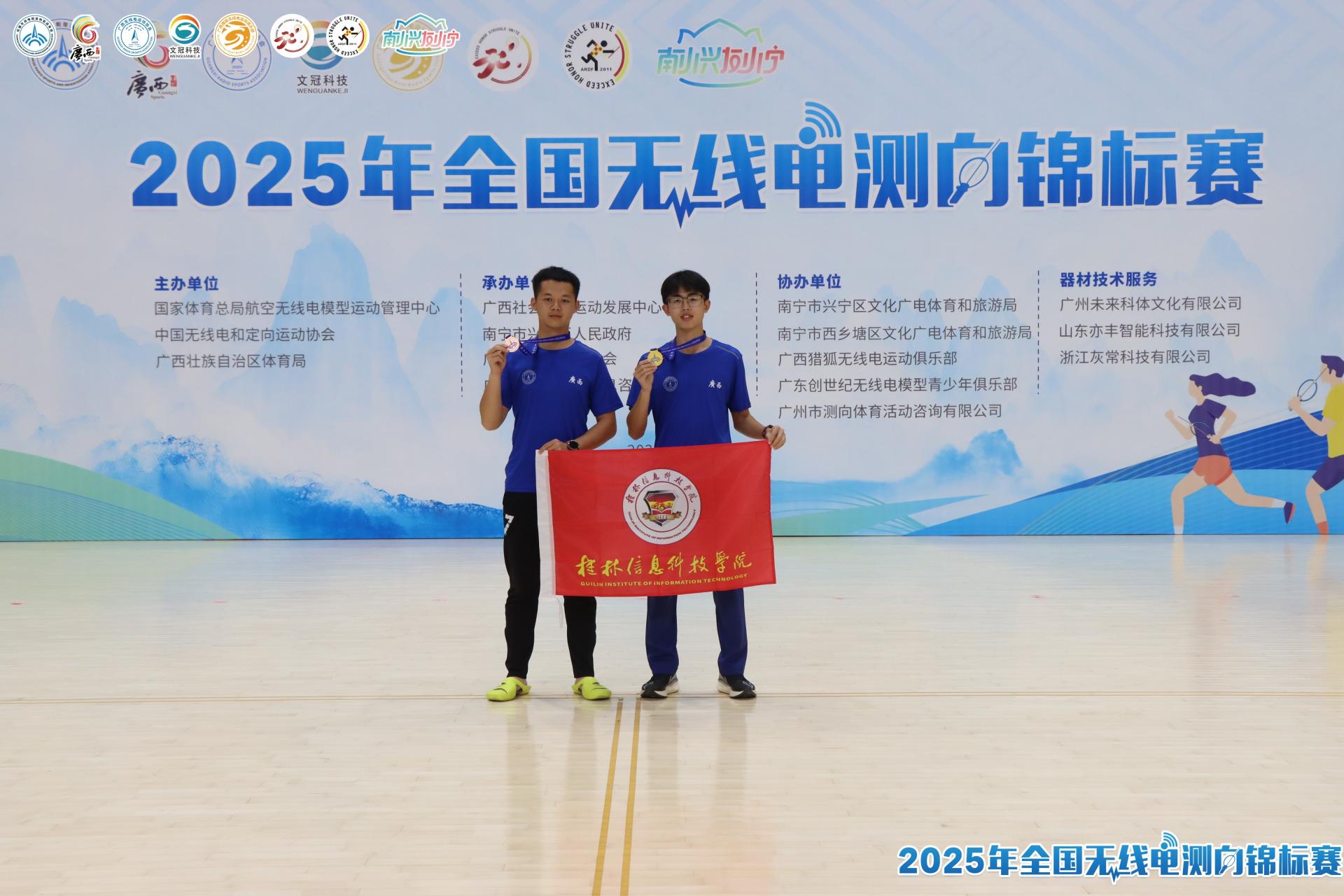 在备受关注的单项角逐中,beat365官网运动健儿展现出强劲竞争力。其中,历经四年赛场磨砺的麦叶杰同学,凭借精准的信号捕捉能力和高效的战术规划,在3.5MHz标准距离项目中脱颖而出,勇夺全国第一名,成功圆梦冠军;刘华智同学则在144MHz中距离项目中沉着应战、稳健发挥,斩获全国第三名。两位同学不仅为学校赢得荣誉,更助力广西队增添一金一铜。