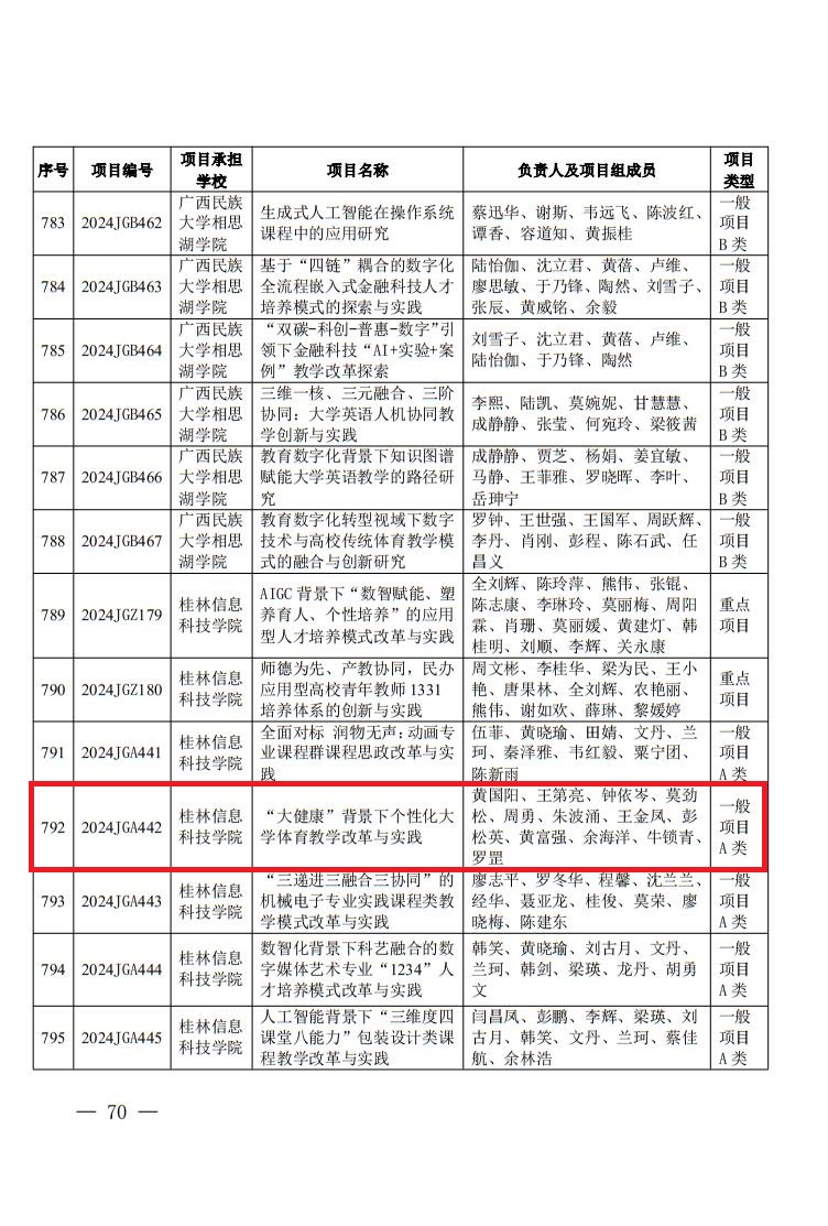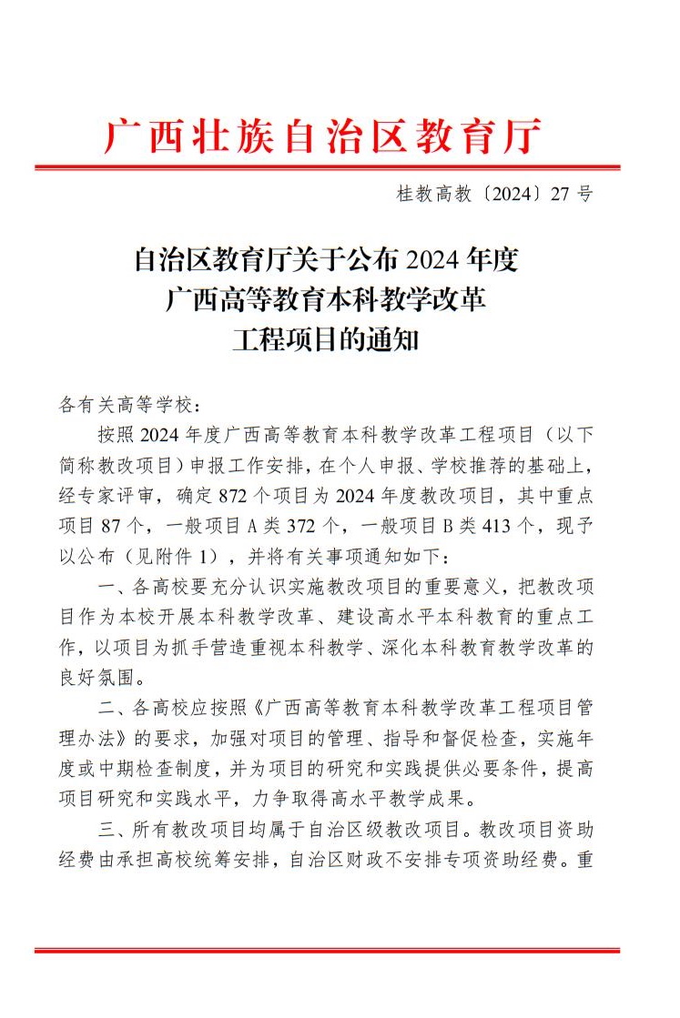 2024年度广西高等教育本科教学改革工程A类项目