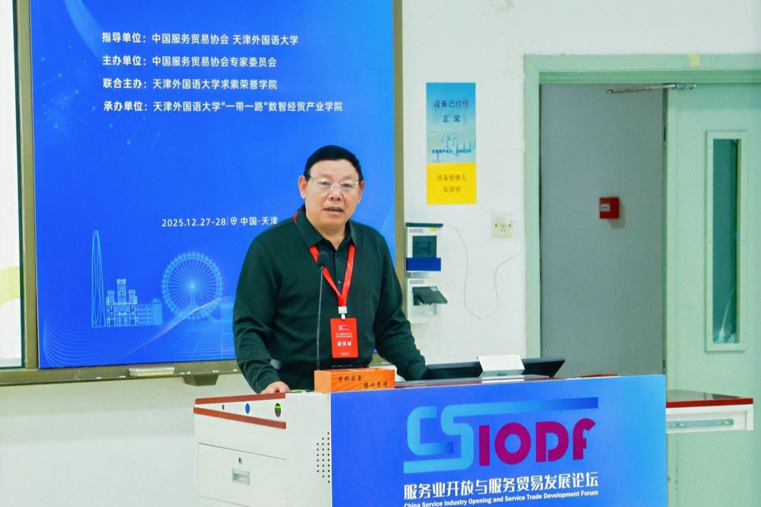 2025年12月27日,第六届服务业开放与服务贸易发展论坛在天津隆重举办,外贸与外语学院院长、澜湄区域国别研究所所长王家年教授受邀出席,并发表题为《澜湄合作视阈下新兴领域服务贸易的 “广西枢纽”:实践、挑战与升级路径》的主题演讲。论坛由中国服务贸易协会专家委员会主办。王家年教授凭借深厚的学术积淀与前沿研究视野,深入剖析澜湄合作框架下广西服务贸易发展的核心议题,充分展现了学校在澜湄区域国别研究领域的专业实力与学术影响力。