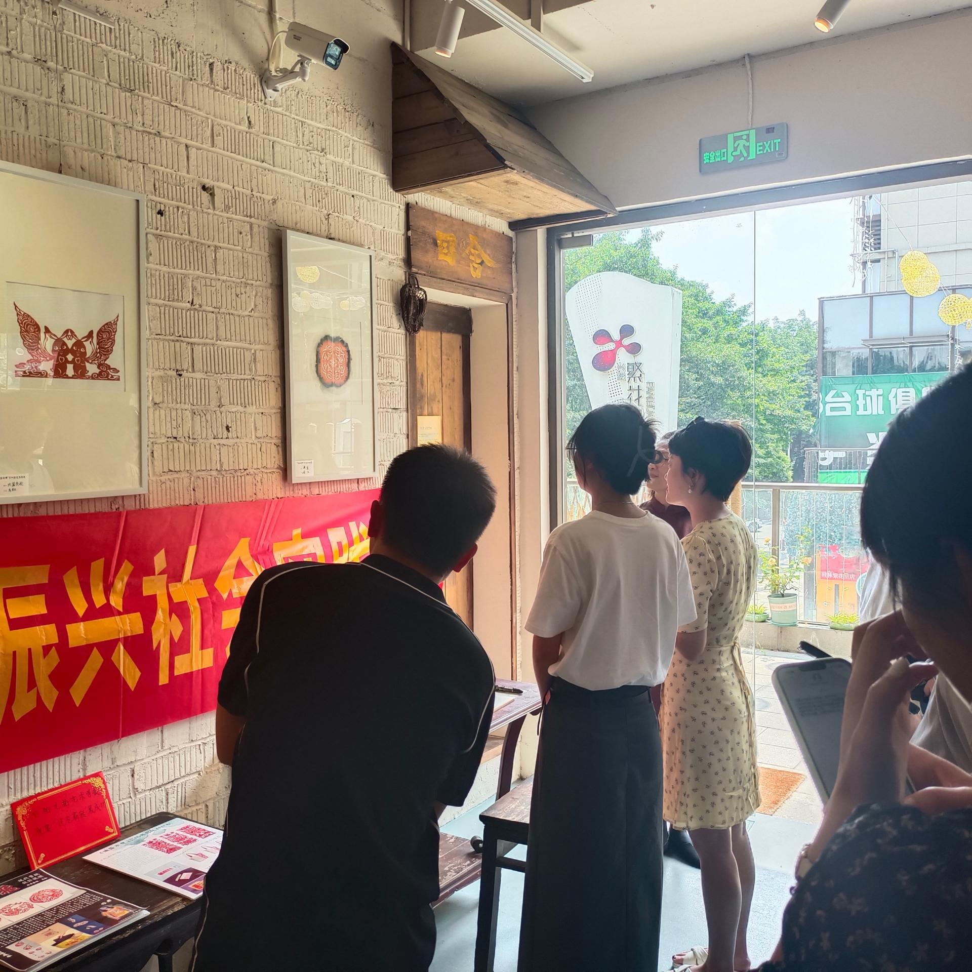 实践团来到隐匿于市巷中的众目书屋,我们有幸与剪纸非遗传承人马红老师进行交流学习,深入体验和了解剪纸文化。书屋内展览了许多剪纸优秀作品,在马老师的讲解下,我们得知每一个作品背后都有其特殊的含义、美好的寓意和浓厚的希望。