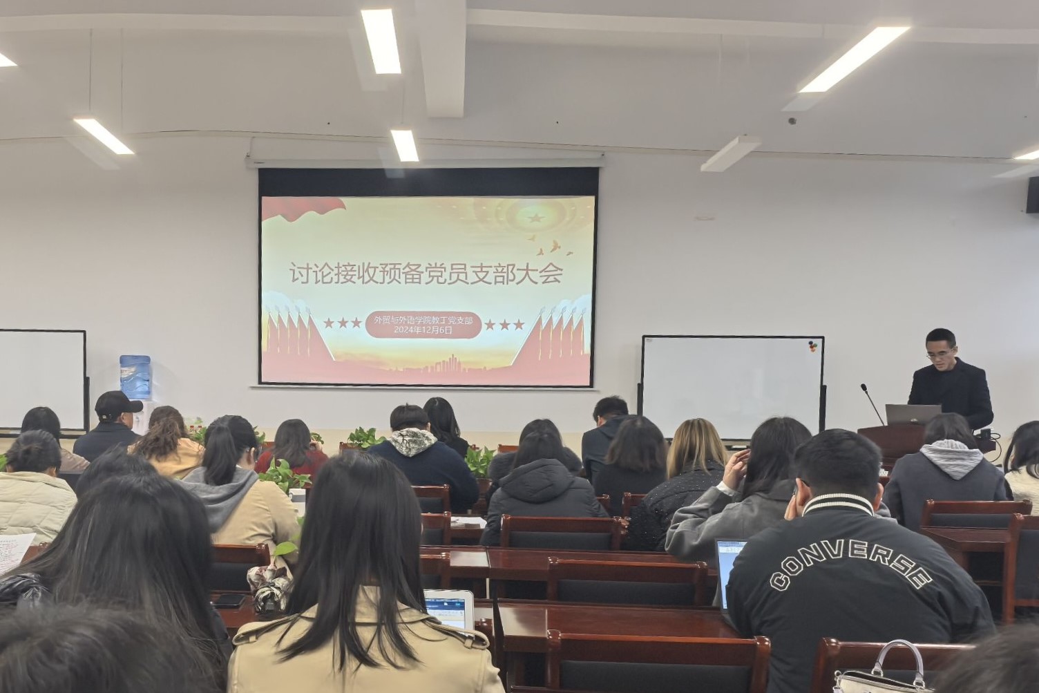 为进一步壮大支部党员教师队伍,发挥基层党组织的战斗堡垒作用。12月6日,外贸与外语学院教工党支部在博文楼F512召开预备党员接收大会,会议由学院教工党支部副书记冯文雄老师主持,支部全体党员、发展对象参加了会议。