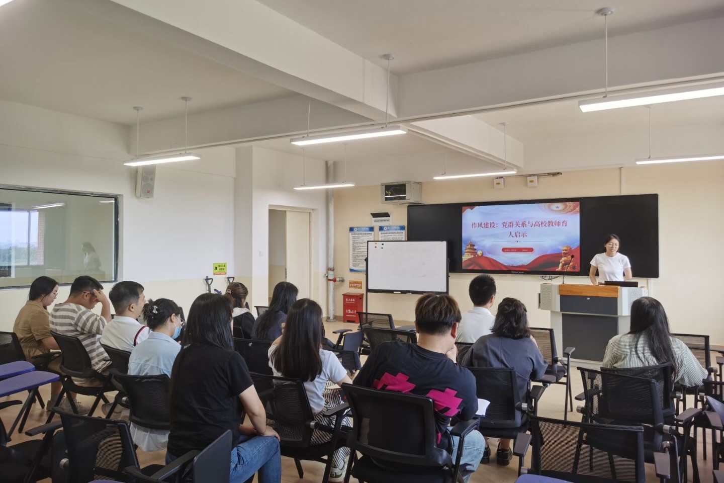 为深入学习贯彻党的二十届三中全会精神,全面了解和学习党的最新理论方针政策,加强师德师风建设。6月12日,外贸与外语学院第一教工党支部在L508召开党员大会。