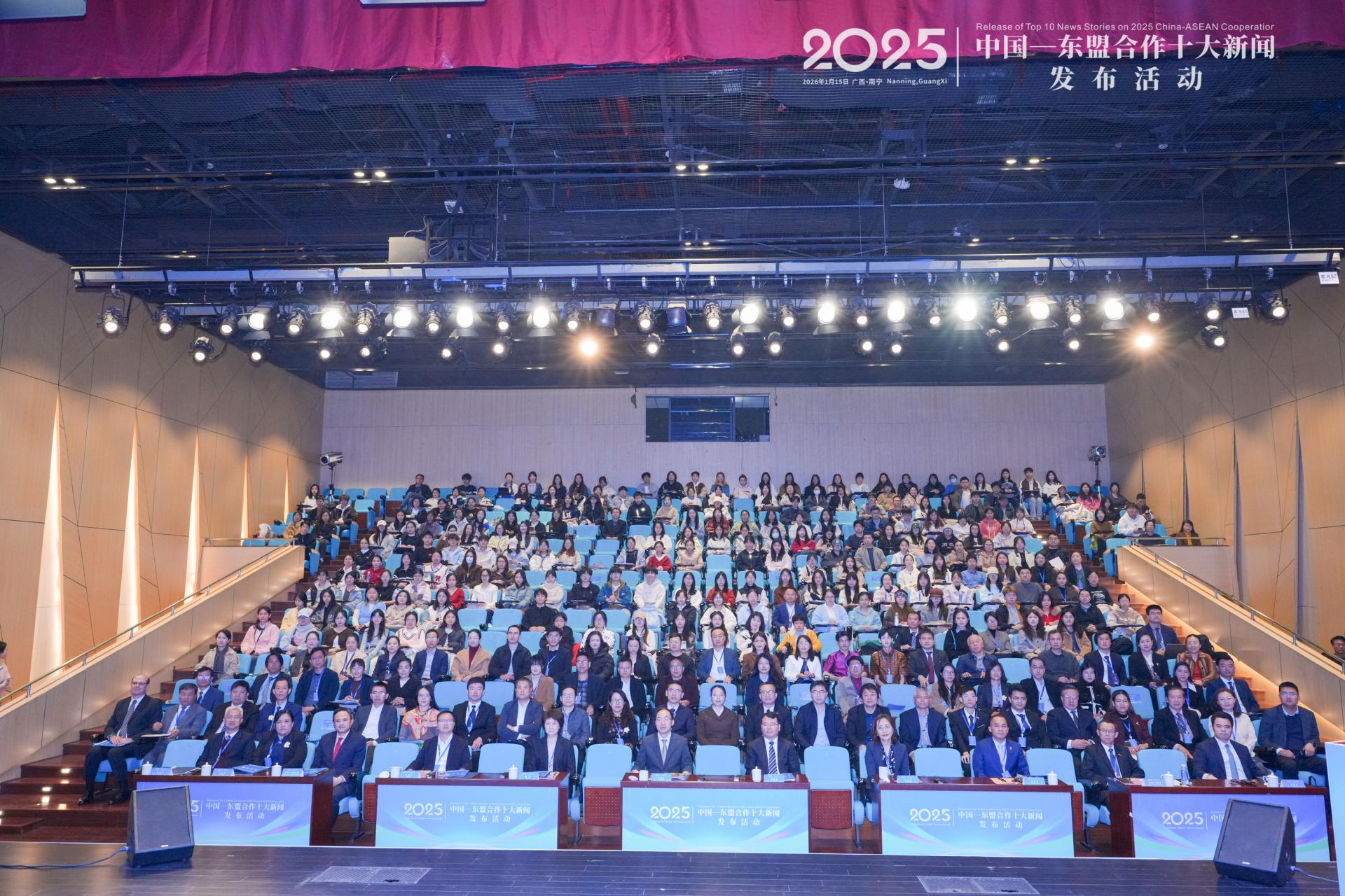 本次活动汇聚了中外多方重要嘉宾,包括中国外文局、外交学院、广西大学领导,柬埔寨、马来西亚、老挝、越南等国驻南宁总领事,以及来自中国与东盟国家有关方面的专家学者及代表300余人。活动内容涵盖领导致辞、新闻发布、专家点评及圆桌对话等环节,围绕元首外交、经贸升级、数字转型、绿色发展等议题展开深入交流。2025年评选出的十大新闻集中体现了中国-东盟关系发展的全面性与韧性,也标志着中国——东盟全面战略伙伴关系正迈向更成熟、更务实的新阶段。