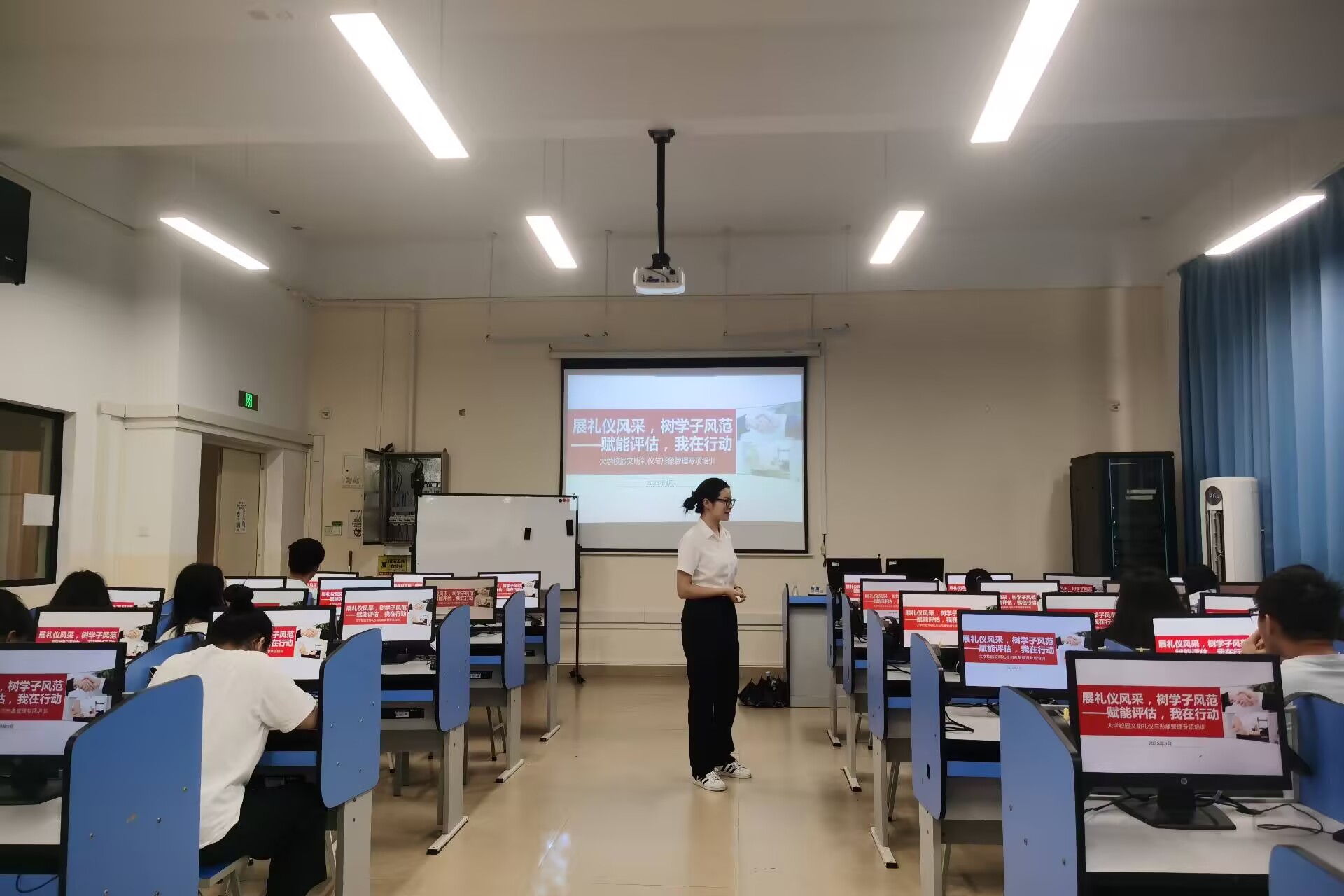 为进一步提升大学生校园文明素养,引导学生以得体言行展现学子风范,同时为酒店管理专业职业素养培育夯实基础,2025年9月30日下午,外贸与外语学院2024级酒店管理2班全体学生在F111教室开展“展礼仪风采 树校园文明”主题班会,围绕校园场景中的礼仪规范展开深入学习与实践,此次会议由学业导师谭燕萍老师主持。