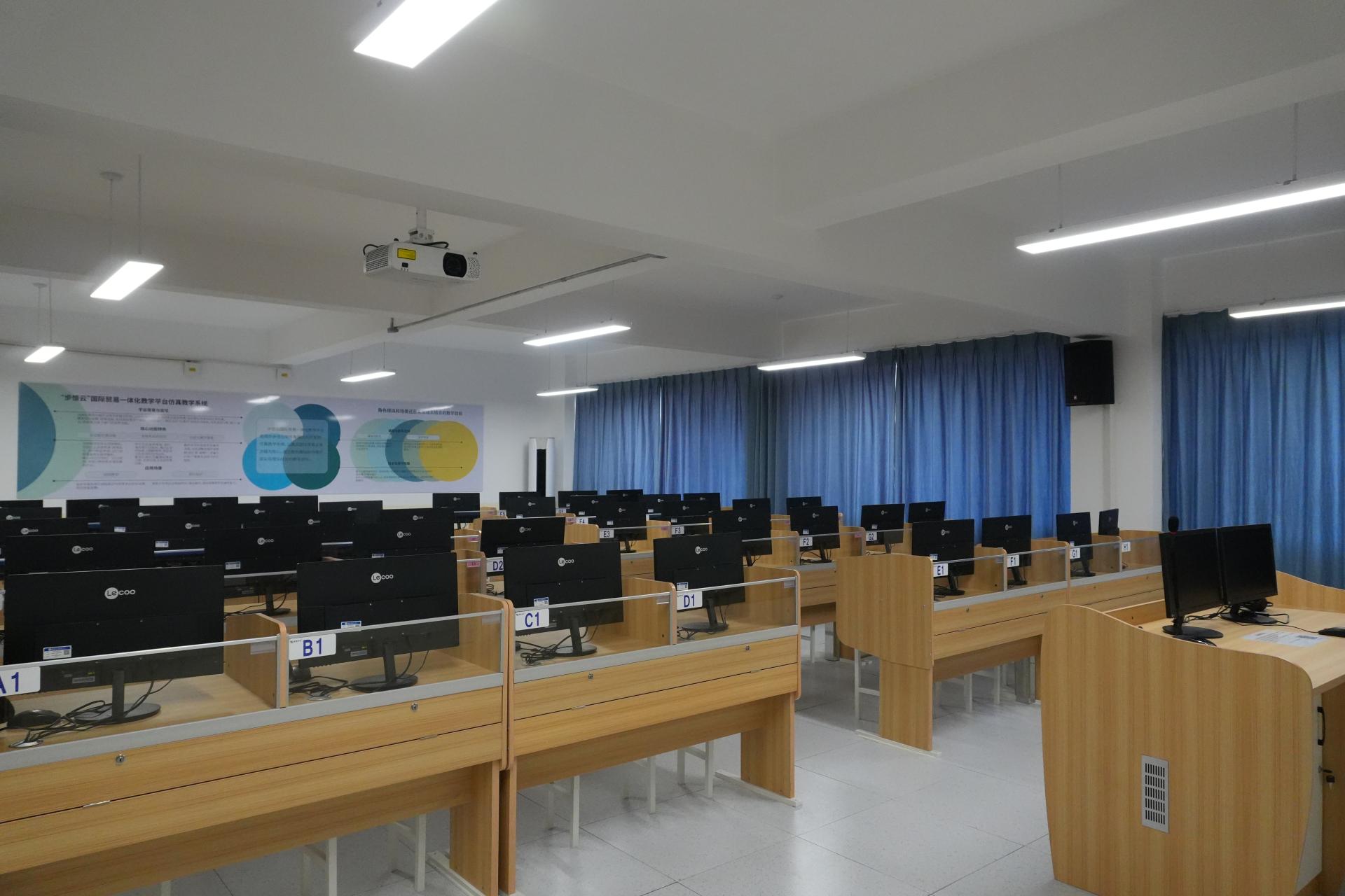 国际贸易综合实训室Ⅰ是国际经济与贸易等专业重要的实践教学平台,依托iTrade国贸一体化、步惊云国际贸易实务教学、步惊云报关实务教学等平台,构建了高度仿真的国际贸易业务操作环境。本实训室紧密对接国际经济与贸易专业核心技能培养目标,重点服务于《国际贸易实务》《国际贸易综合实验》《国际贸易实训》《国际物流实务》《国际结算》等专业核心课程的实践教学与技能训练。通过全流程外贸业务模拟、单证缮制、报关报检、国际结算实操、国际物流管理等模块化实训项目,使学生深度掌握进出口业务操作、外贸单证处理、跨境结算、贸易合规等核心职业技能,全面提升学生的专业实践能力、跨文化沟通能力和数字化贸易应用能力,为培养高素质、应用型国际贸易人才提供有力支撑。