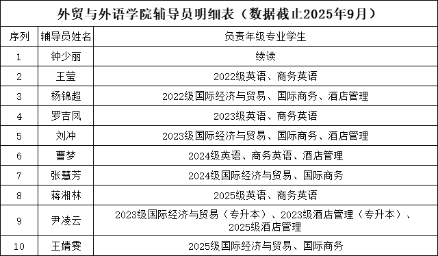 外贸与外语学院辅导员明细表(数据截止2025年9月)