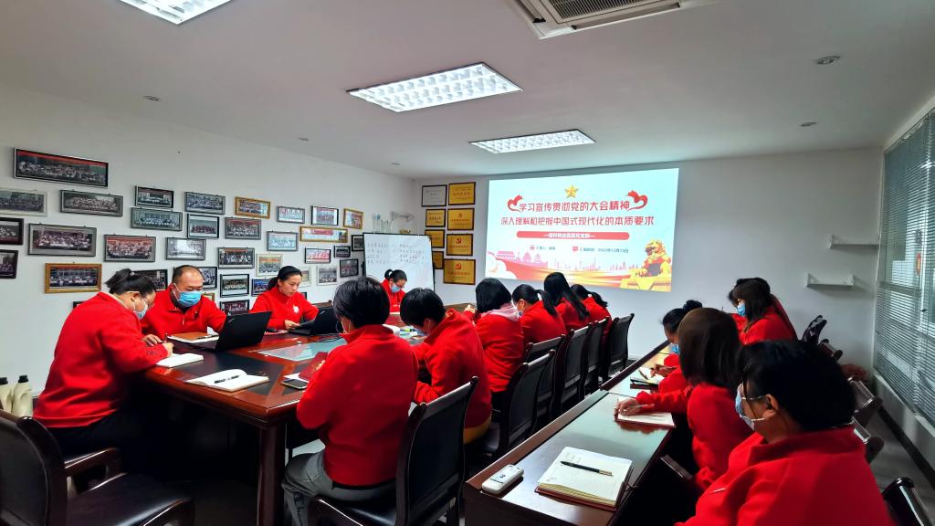 会上,支部书记奉燕围绕中国式现代化是中国共产党领导的社会主义现代化、深刻认识中国式现代化的本质要求和中国特色的内在联系、牢牢把握推进中国式现代化的重大原则三个方面入手,深入浅出地阐释了以中国式现代化全面推进中华民族伟大复兴为什么做、如何做和做的意义,让党员同志深刻感悟以中国式现代化全面推进中华民族伟大复兴的坚强保障和凝聚力。