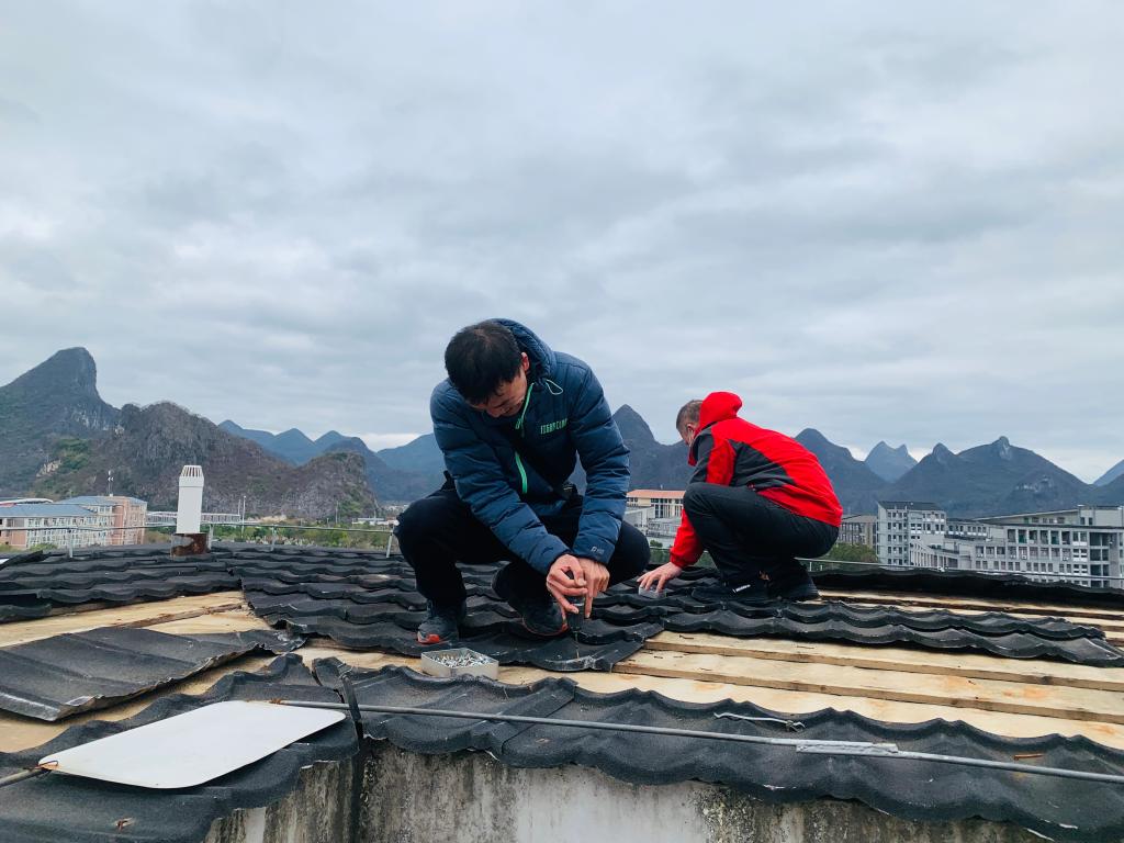 2月13日上午,维修中心五名维修人员分别对五号及七号公寓楼顶进行了天面铁皮维修加固工作,为师生员工人身安全成功解除了安全隐患。