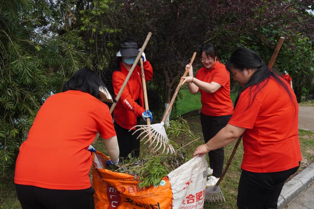 活动主要对人工湖周边修剪下来的树枝、落叶进行清理。全体党员同志配合默契,有的用搂草耙子耙落叶、有的往袋子里装树枝、有的用扫帚清扫垃圾。经过全体党员1个多小时的劳动,彻底清理了人工湖四周树枝、杂草等垃圾,校园环境焕然一新。
