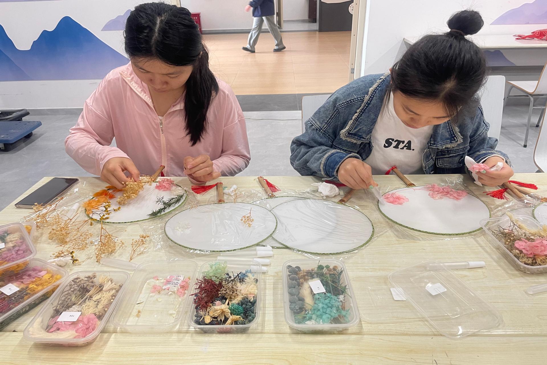 活动设置艾草锤 DIY、团扇手绘、绣球手工三大体验项目。学生在生活老师的指导下,动手制作民俗手作,绘制春日团扇与缝制特色绣球,在实践中了解广西三月三文化内涵。现场氛围热烈有序,大家在创作与交流中领略民俗风情,收获专属手作作品。